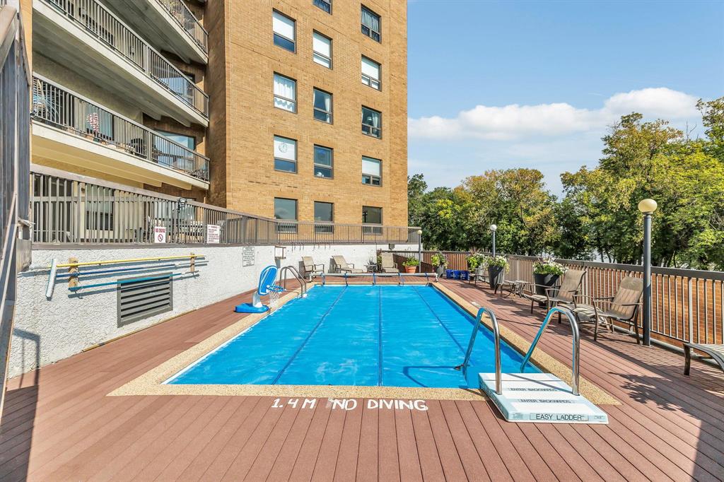 Offers presented as received. Welcome to this beautifully maintained 1,500 sq ft condo with a 26 foot, four-season enclosed balcony overlooking the Red River. This spacious suite offers the perfect blend of comfort and convenience. Featuring 2 generous bedrooms (both w/ river views) & 2 full bathrooms w/ walk-in showers, this layout is ideal for downsizers who don’t want to compromise on space. Enjoy a walk-in closet, in-suite laundry, in-suite storage PLUS two additional lrg storage lockers in the parkade. The kitchen was updated in 2008 with warm maple millwork, ample storage, and a bright eat-in area. The open living and dining rooms easily accommodate full-size furniture, meaning you can bring it all with you in the move. Built w/ concrete and steel construction, this well-managed building offers exceptional safety, quiet living, and peace of mind. Enjoy plenty of visitor parking, updated security entry, elevator service, and TWO heated underground parking stalls. Amenities incl an outdoor pool overlooking the Red River, compost service, & main flr lounge. Spacious, secure, and beautifully positioned - riverfront condo living at its best! Pet friendly with no size restrictions.