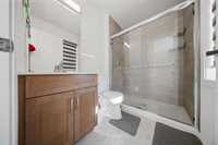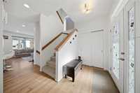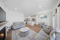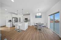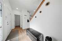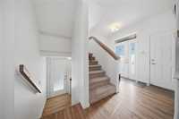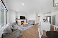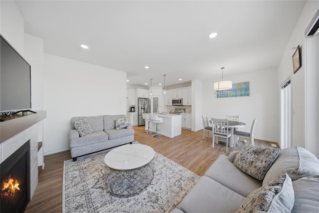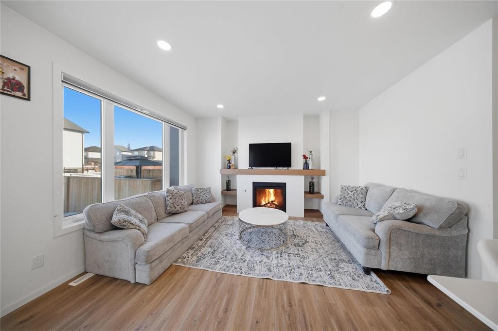 This beautifully designed open-concept home features 9-ft ceilings, a tiled gas fireplace entertainment wall, and laminate flooring throughout the main floor. Offering 3 bedrooms and 2.5 bathrooms, this fully upgraded, show home–style property includes a single attached garage and a private side entrance to the basement. With nearly 1387 sq. ft. of luxury living space, this home is loaded with premium features, including oversized windows, a large fenced backyard, and a built-in entertainment center. The kitchen showcases custom oversized cabinetry, quartz countertops, and high-end finishes throughout. The bathrooms include a glass-tiled shower n modern fixtures.