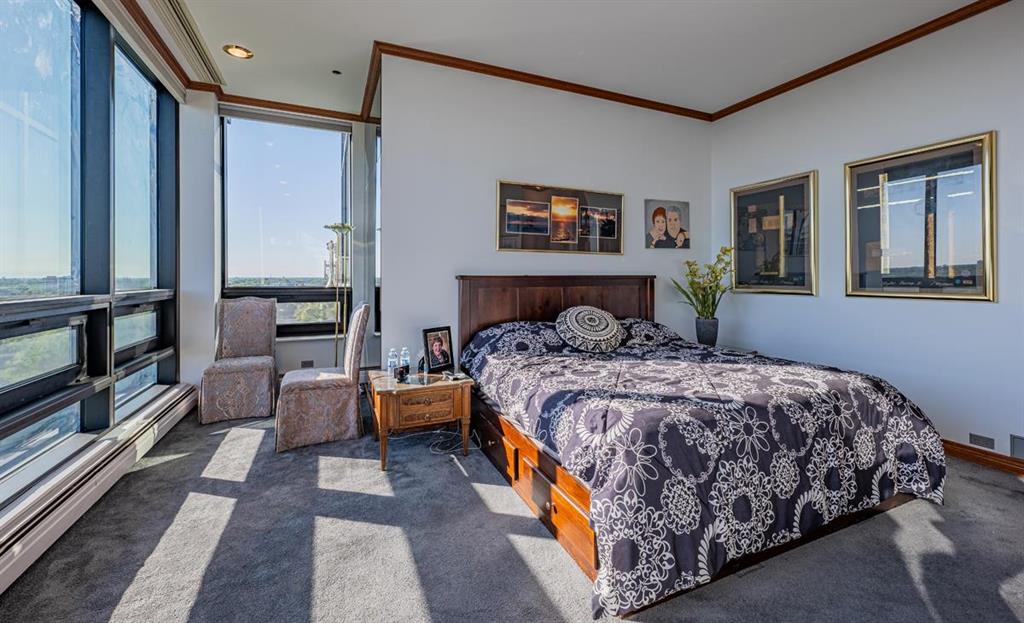 Seize this rare opportunity to own one of the city's most prestigious penthouse condos. With over 2,500 sq ft of living space and breathtaking views, this 2-bedroom + den condo is a must-see! Upon entering PH D, you'll pass through a formal foyer into an elegant living and dining area, where expansive windows showcase million-dollar views. The updated kitchen and family room offer comfortable living with many amenities, blending luxury and convenience seamlessly. The well-designed floor plan separates the main living areas from the bedrooms, ensuring privacy and functionality. Both bedrooms and the den feature walk-in closets, while the primary bedroom boasts a cedar closet and a beautiful en-suite. Enjoy the convenience of two underground parking spots, a storage unit, beautiful party/common room and 24-hour secured entry with a doorman. Call today and make this luxurious penthouse your new home! Be sure to check out the VIDEO TOUR too!
