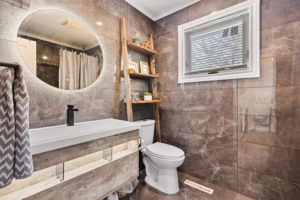 Upstairs are the spacious MAIN BEDROOM which includes a WALK-IN CLOSET & 2-PIECE ENSUITE and 2 Additional BDRMS & a 4-PC BATH with oversized tile and modern black fixtures.
