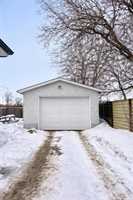 Recent improvements include paint, vinyl flooring, new upstairs windows (completed October 2025), and furnace replaced in 2019. Front and back decks were added. The property also features a newly fenced yard, spacious driveway, and an oversized single garage in the backyard.