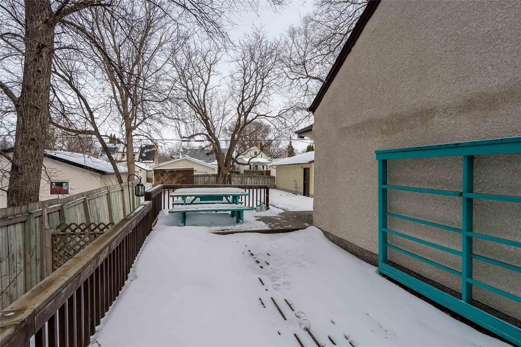 Showings start Wed, Feb 25th. Open House Saturday, Feb 28th, 2pm-4pm. Offers presented Thursday, Mar 5th, in the evening. Beautiful 2 bed, 2 full bath, bungalow located on a nice street in Scotia Heights. You will love the gleaming hardwood floors, spacious living room & dining room. Large eat-in kitchen has a ton of counter space & cabinetry, tile backsplash, newer SS kitchen appliances included. Down the hall you will find 2 spacious bedrooms & a nicely renovated main floor full bath w/ built-in shelving & jetted tub. Your fully finished basement has updated flooring, dry bar, 2nd full bath, utility room, laundry area & a cold storage room. Recent improvements include: Freshly painted interior(26), kitchen window(26), vanity(26), painted exterior(25), eavestroughs & downspouts(25) & H/E furnace(22). Your massive almost fully fenced backyard, features a huge wrap around deck, storage shed & OVERSIZED 24FT x 24FT, double detached garage. Paved front driveway is the perfect place to park your boat or R.V. Situated on a rarely available 60FT x 132FT lot. Just minutes to Kildonan Park, all levels of schooling, shopping, public transportation & restaurants! This is a must see! Book your showing today!