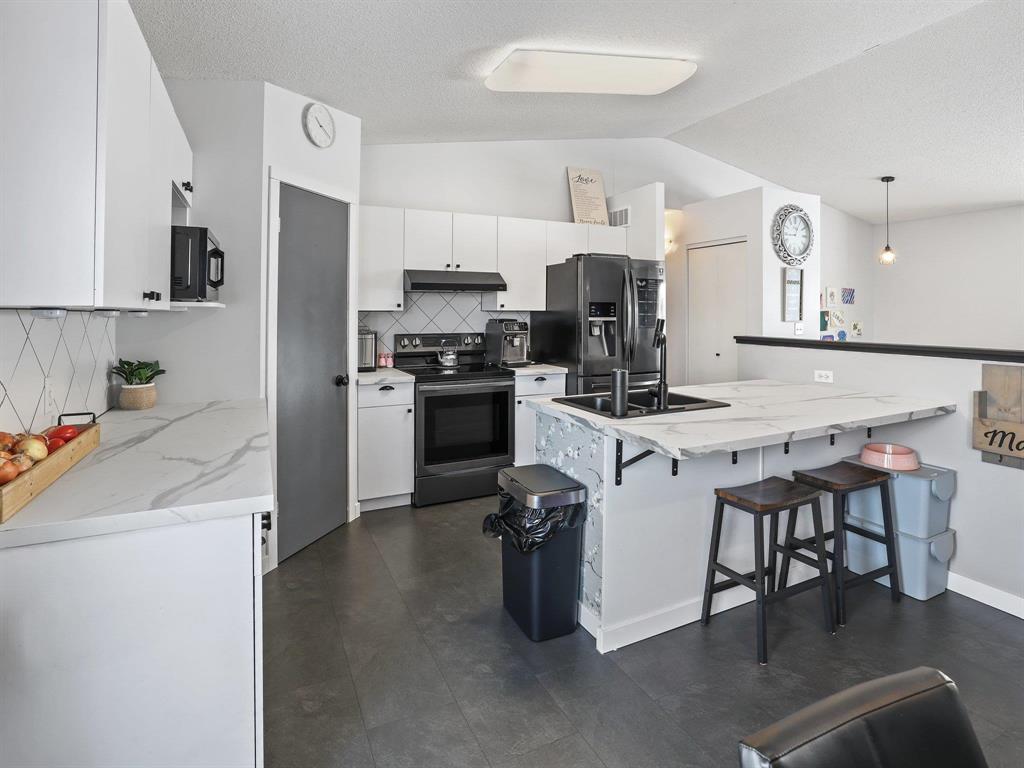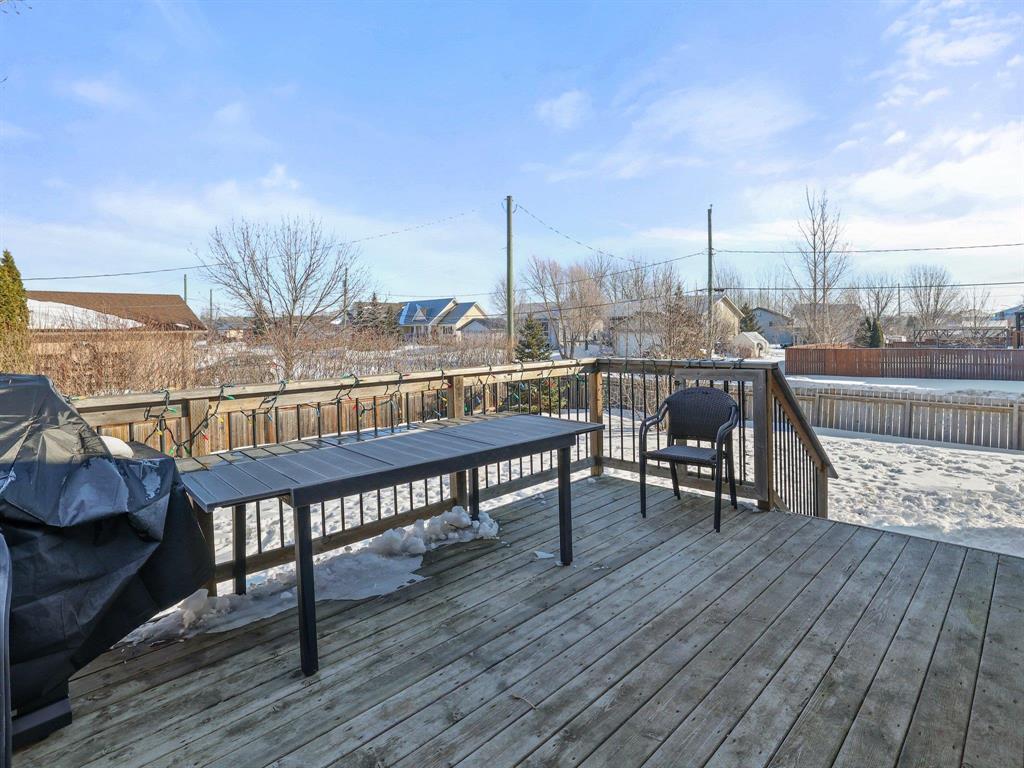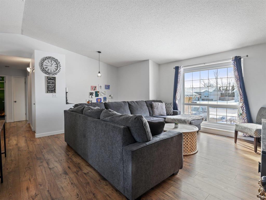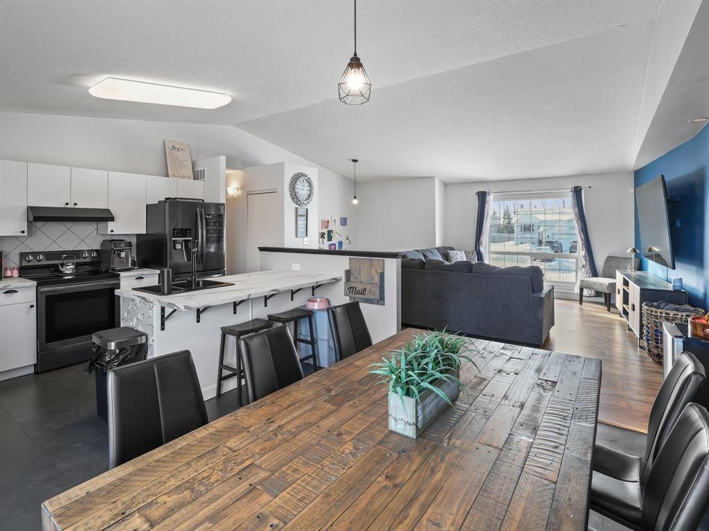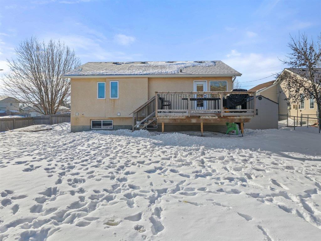 Offers as received. A beautifully maintained 2002-built home offering space, comfort, and functionality for today’s modern family. Featuring five spacious bedrooms and two full bathrooms, this move-in-ready property is ideal for growing families or anyone seeking additional room for a home office, gym, or hobby space. The bright and inviting main floor showcases a large living room with vaulted ceilings that flows into the open-concept dining area and renovated kitchen. Newer flooring throughout the main level and three generously sized bedrooms along with a full bathroom. The fully finished basement expands your living space with a large rec room, two oversized bonus bedrooms, a second full bathroom, a laundry/utility room and an impressive storage area. Highlights include: 200amp, A/C, Sump pump, Shingles(2023), Furnace(2021), HWT(2024). Curb appeal shines with a double attached garage, extra driveway parking and a charming apple tree out front. The backyard is designed for enjoyment, featuring a large wood deck and a massive fenced yard. Don’t miss your opportunity to own this spacious, well-updated home. Be sure to view the video tour!