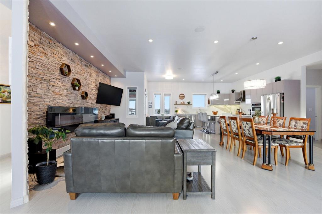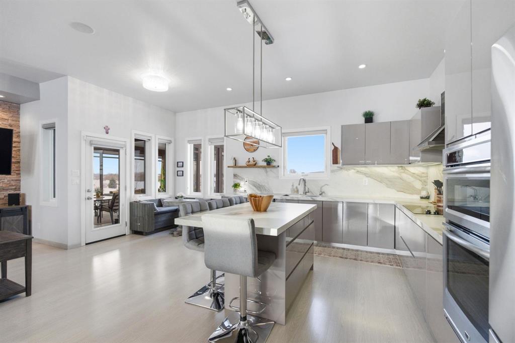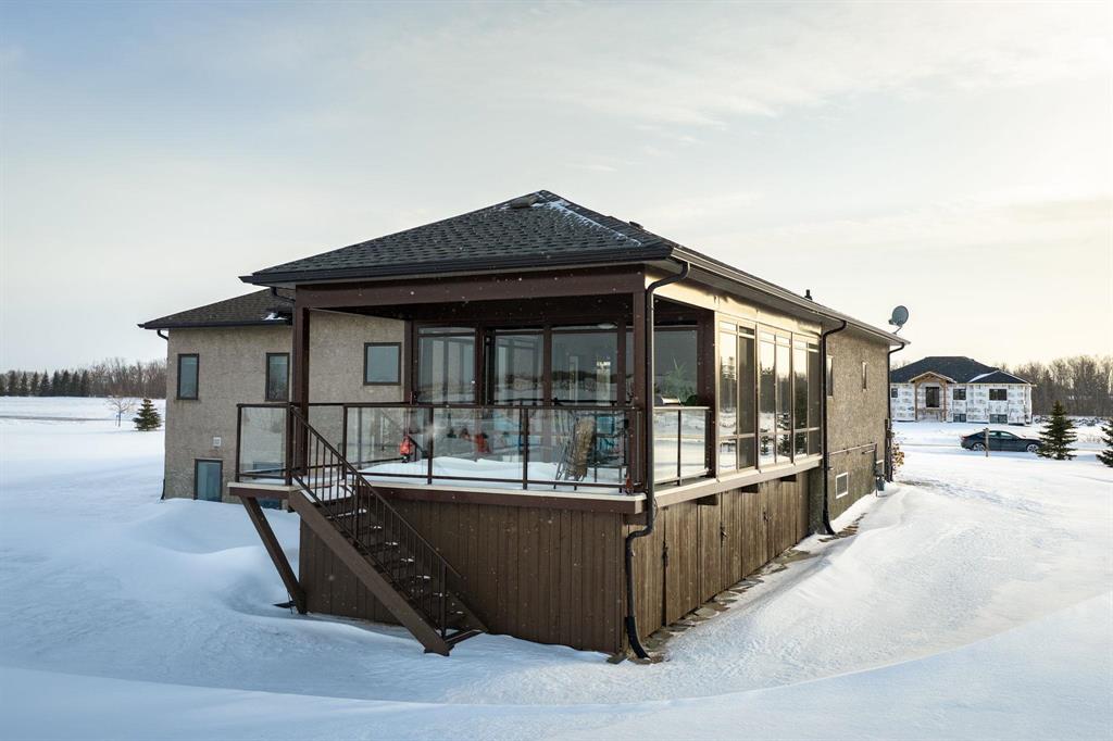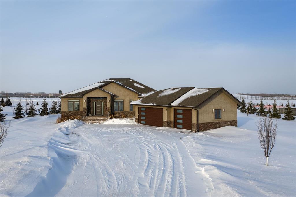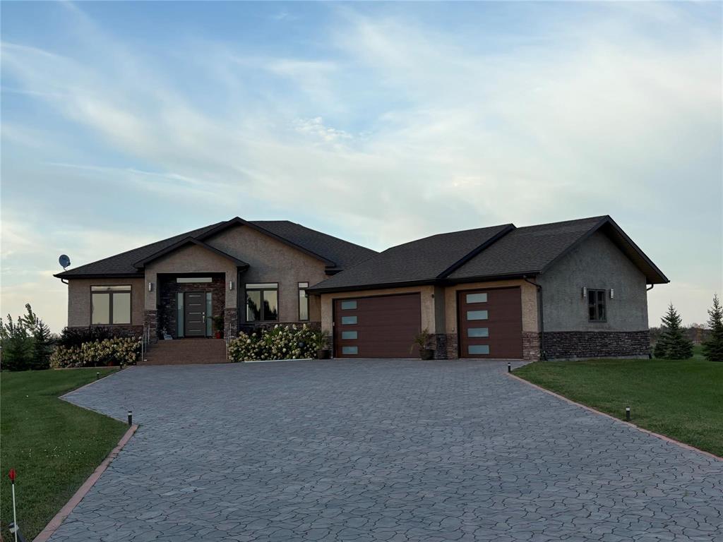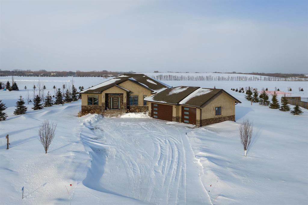 Simply gorgeous & impeccably maintained bungalow located on 2 beautiful and spacious acres only minutes to the town of Birds Hill. Step up to this stunning home and notice the barkman stone driveway. Inside you are immediately struck with the 10ft ceilings and open concept through the kitchen, dining room and great room. The modern kitchen offers plenty of cabinets, large island and separate breakfast nook along with an upgraded porcelain backsplash. The great room has a stone feature wall w/accent lighting and glass faced F.P. Off the kitchen is fabulous sunroom (built on piles) great for entertaining w/wall to wall windows and separate covered bbq area. 3 bedrooms grace the main floor. The primary bedroom features walk thru closet w/organizers and deluxe ensuite. Large main floor mudroom w/main floor laundry. Moving to the finished lower level - The spacious recreation room w/natural gas fireplace is open to the wet bar area w/large island. Two additional bedrooms (or bedroom and office) compliment the space along with a 3pc bath w/steam shower. Newer front door and garage doors (2025). Huge Triple attached garage that is insulated & cladded. A must see !