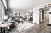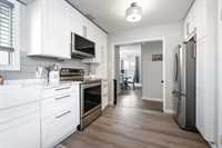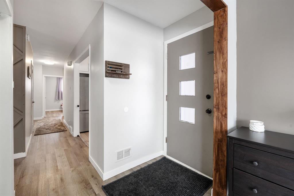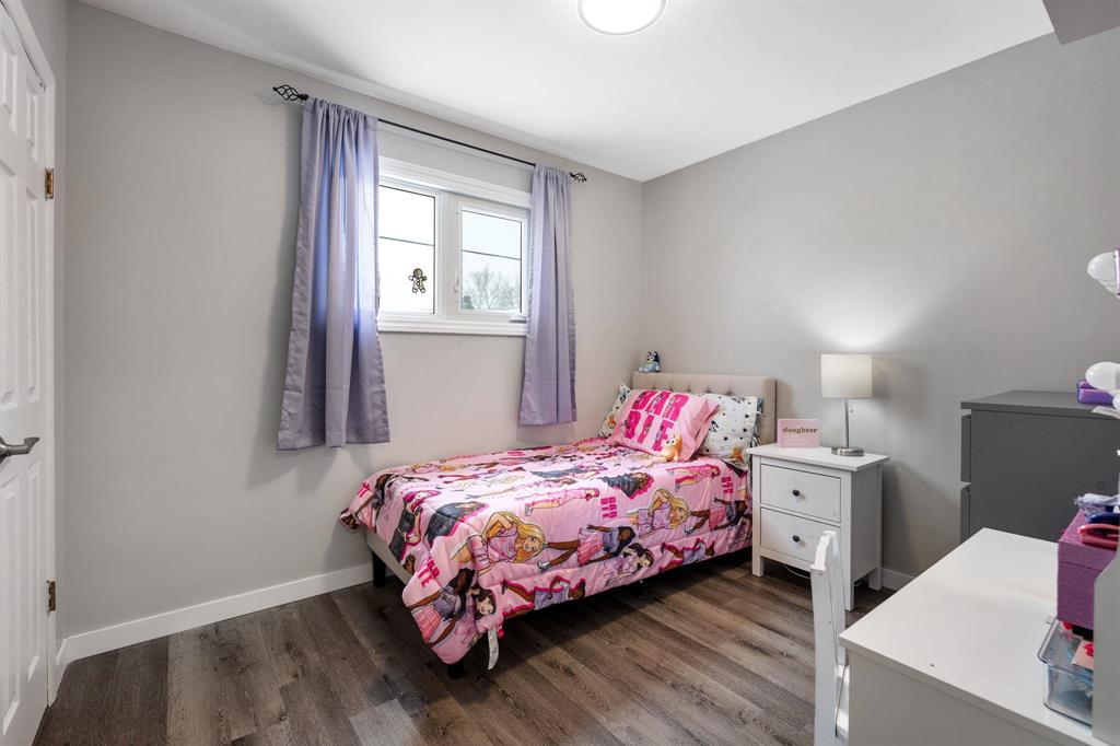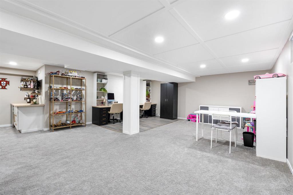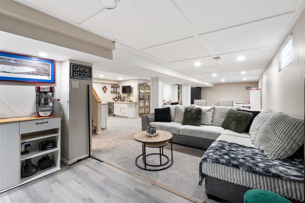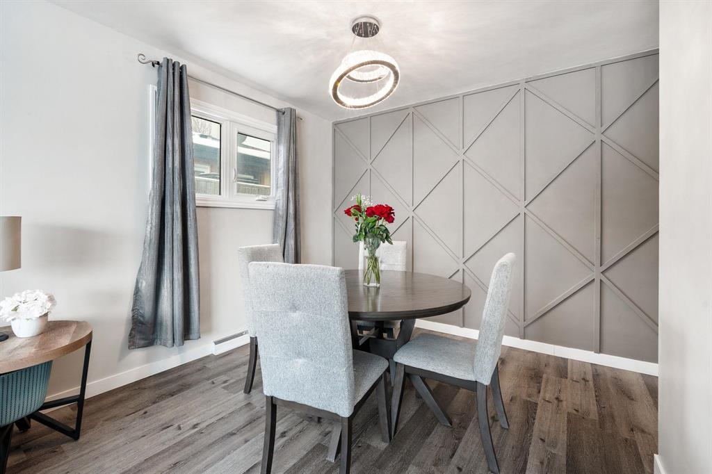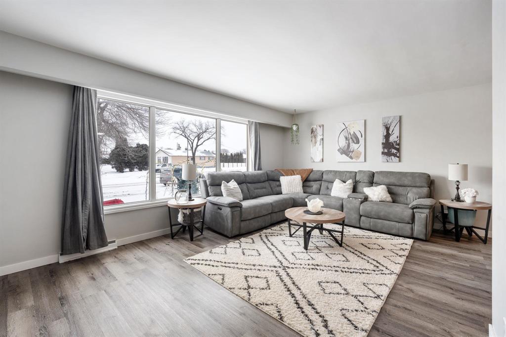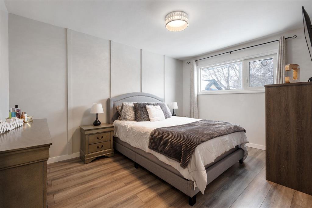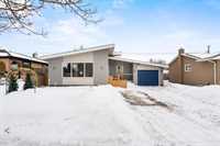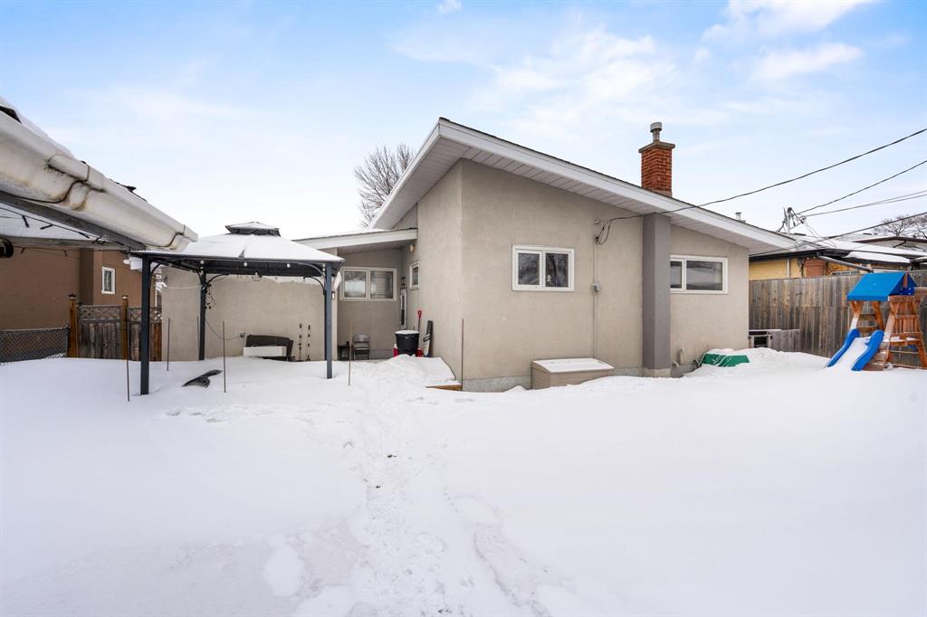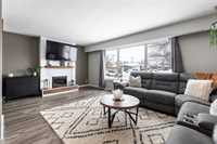 OFFERS ANYTIME! Welcome to this beautifully updated Garden City bungalow where mid-century modern style meets a fresh contemporary makeover. Offering 1109 SF of inviting living space, this move-in-ready home blends warmth and function. The main level features a bright L-shaped living and dining room with a large picture window, custom feature wall, and built-in entertainment centre with electric fireplace. The kitchen showcases timeless white cabinetry, a farmhouse sink, stainless steel appliances with OTR microwave, generous counter and cabinet space, and a breakfast bar overlooking the backyard. Down the hall are three spacious bedrooms and a stunning 4-piece bath. The fully finished basement offers a large rec room, second entertainment area with electric fireplace, dry bar, cedar closet, laundry area, additional 4-piece bath, and storage/mechanical room. Complete with a high-efficiency furnace and PVC windows (except one). Outside you’ll find a single attached garage, interlocking driveway, and fenced backyard with deck and pergola. Close to schools, shopping, transit, and more!