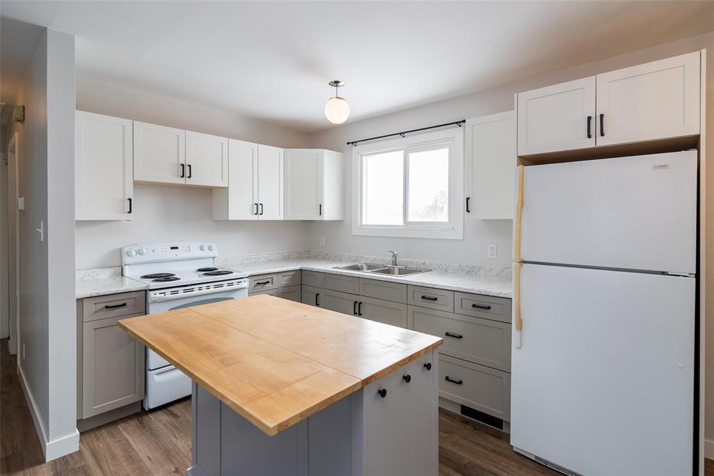 S/S now. Offers on March 5. Welcome to this well-maintained bi-level home in the desirable area of Mission Gardens. Offering 760 sq. ft., this versatile property features 3 bedrooms, 2 full bathrooms, 2 full size kitchens, and separate entrances—ideal for extended family living or potential secondary suite use. The main floor boasts a bright, spacious eat-in kitchen with island, comfortable living room, two bedrooms, and a full bath. The lower level includes an additional bedroom, 3-piece bath, generous eat-in kitchen, and living area. Each level has a separate laundry area. Enjoy the expansive backyard with no rear neighbours—perfect for summer BBQs, gardening, or relaxing outdoors. A 22x22 double detached garage is partly insulated. Numerous updates include both kitchens, bathroom, flooring, garage doors, 200-amp electrical service, hot water tank, furnace (2019), roof (2018), windows (2018), garage roof (2015) and much more. Conveniently located close to schools, parks, transit, shopping, and amenities. Vacant possession. Book your private showing today.