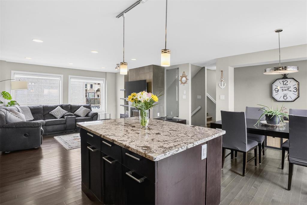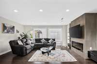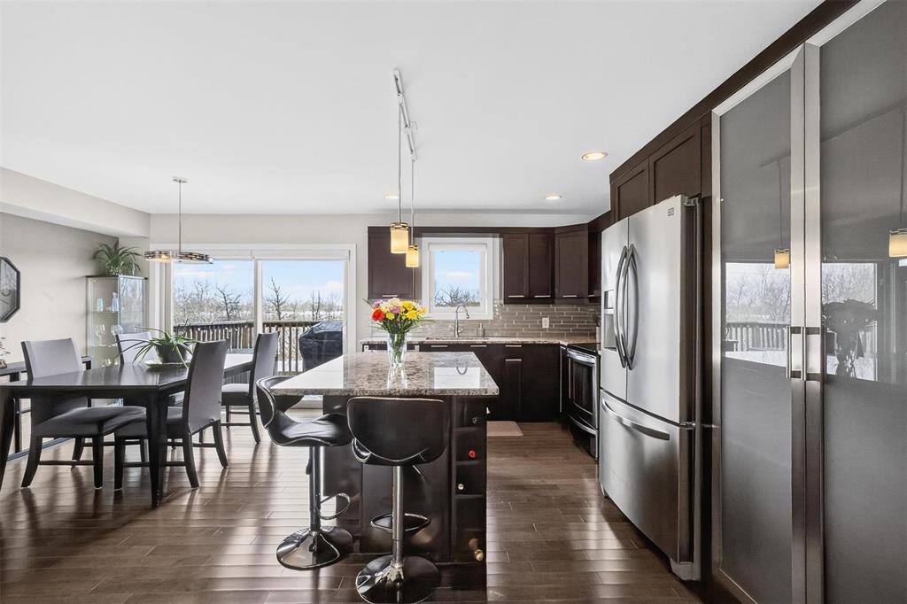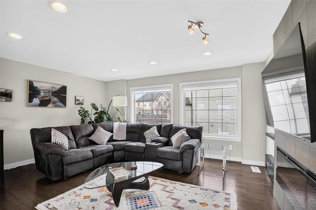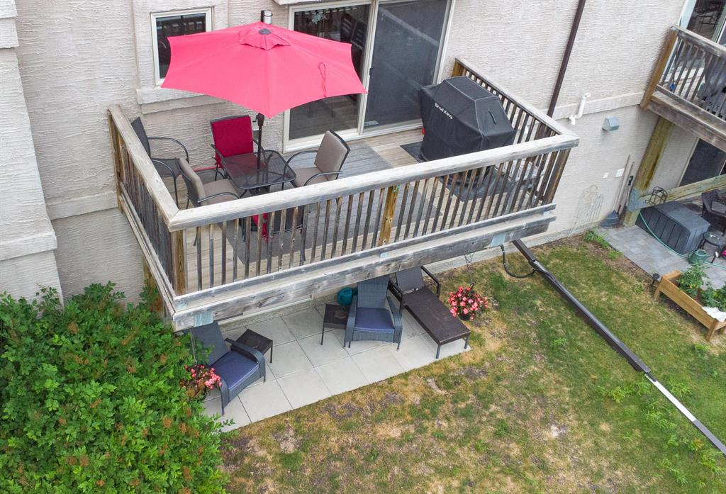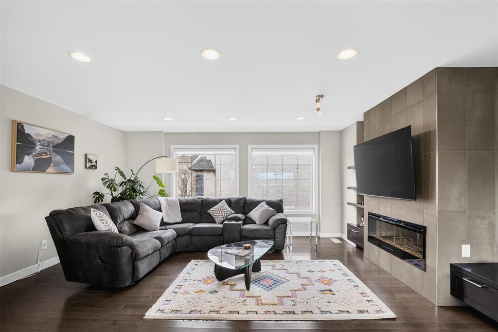 Welcome to this stunning 3-bedroom, 3-bathroom pet-friendly townhouse condo in the sought-after Royalwood Estates! Ideally located within the complex, this home offers great privacy, convenient guest parking out front, and backs onto greenspace. High-end finishes shine throughout, including custom built-ins with a cozy fireplace and rich maple hardwood floors across the main level. The kitchen features stainless steel appliances, tile backsplash, granite countertops, a large island, under-cabinet lighting, and pot lights. Oversized windows fill the open-concept living and dining areas with natural light, leading to a south-facing raised deck—perfect for entertaining.