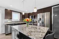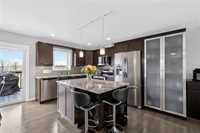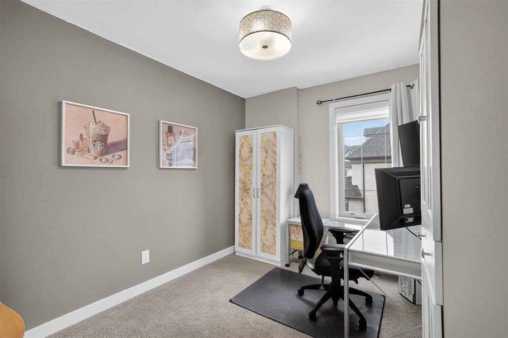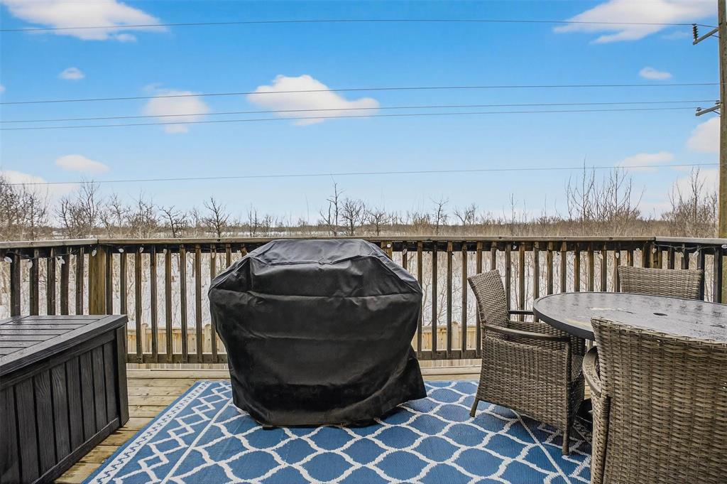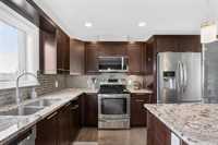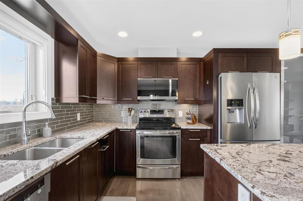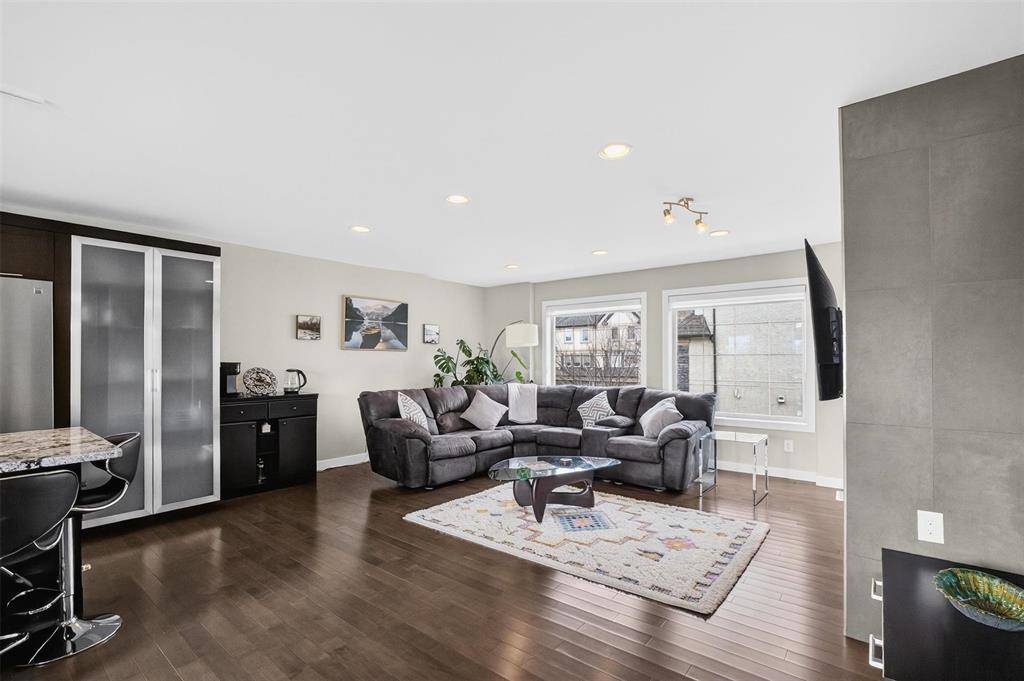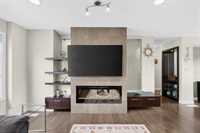 Welcome to this stunning 3-bedroom, 3-bathroom pet-friendly townhouse condo in the sought-after Royalwood Estates! Ideally located within the complex, this home offers great privacy, convenient guest parking out front, and backs onto greenspace. High-end finishes shine throughout, including custom built-ins with a cozy fireplace and rich maple hardwood floors across the main level. The kitchen features stainless steel appliances, tile backsplash, granite countertops, a large island, under-cabinet lighting, and pot lights. Oversized windows fill the open-concept living and dining areas with natural light, leading to a south-facing raised deck—perfect for entertaining.