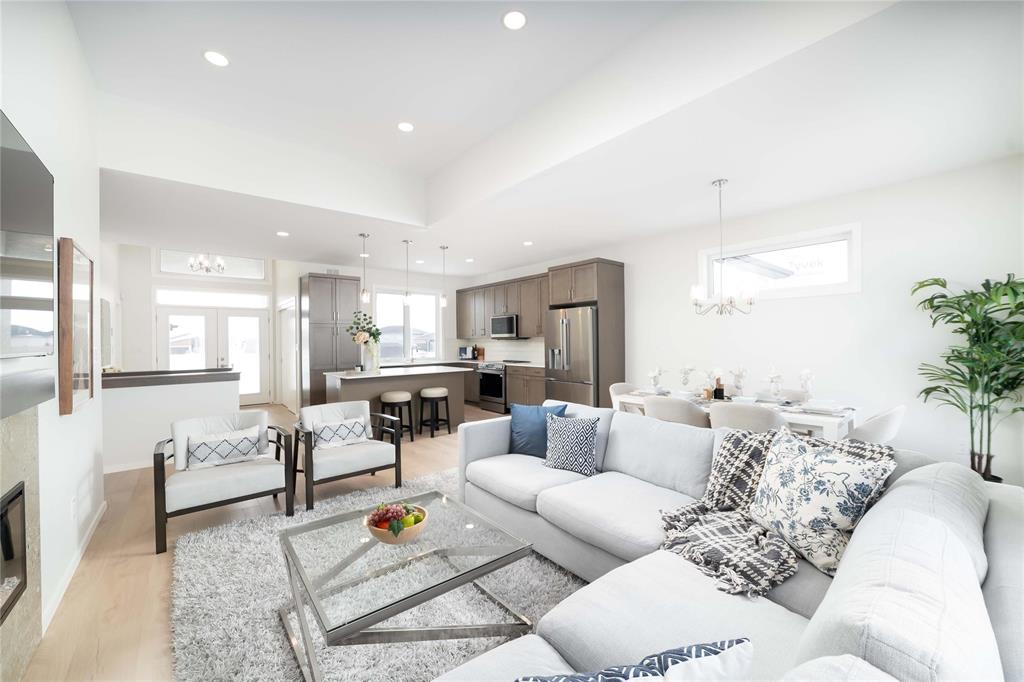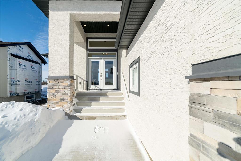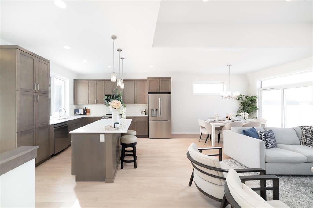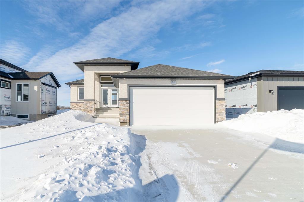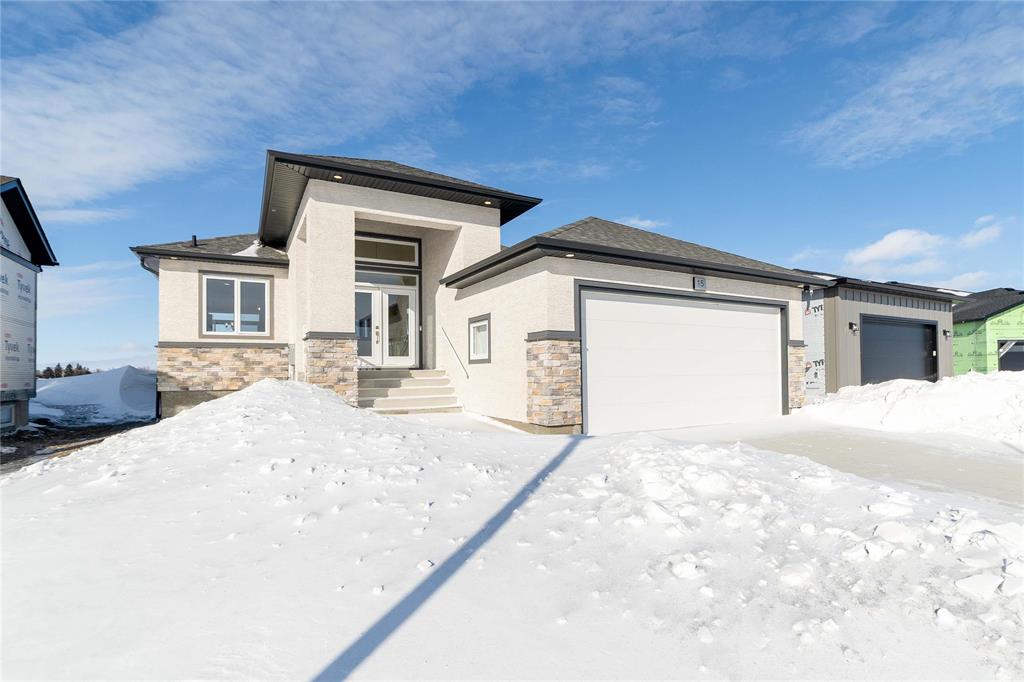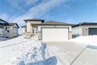 SHOW HOME FOR SALE: At 1427sf, this A&S Homes bungalow plan offers a spacious yet cozy design, with 11' ceilings & exceptional details inside & out. The deluxe kitchen features a large island, quartz counters, front facing window and an abundance of cabinetry & counter space. The open concept layout allows your new KT to flow seamlessly into the dining & great room areas, making it the perfect space for entertaining or simply relaxing with family. The great room centers around an elegant tile facing fireplace w/built-in shelves. And the dining area has large patio doors that lead to a spacious two tier deck. Upgraded lighting and beautiful laminate floors throughout most of the main floor areas. The primary BR is a private retreat, with walk-in closet & ensuite highlighted by the 5' shower and tiled floor. A full laundry room, a second full bath, and two additional BR's complete this inspired design. The exterior stands out with enhanced stone & wood siding details. Oversized (22'x24') garage w/full concrete driveway, sidewalk and front steps. Fully landscaped, front and back. Show Home open Sat & Sun, 12:00 noon to 5 pm, or call to book your private viewing.