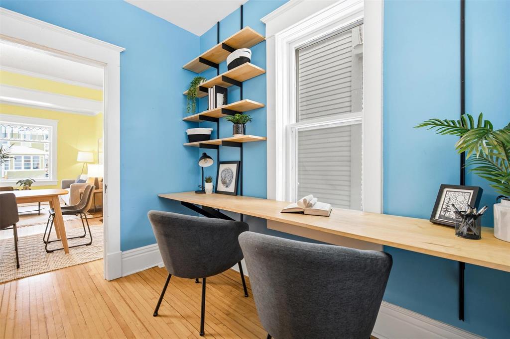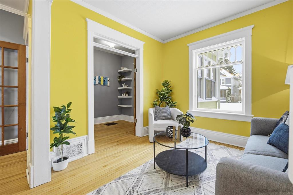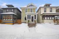 Offers as received! Situated on a desirable Wolseley street just steps from shops, schools, transit and walking trails, this well maintained two-storey blends classic charm with smart updates. An inviting front porch welcomes you into a spacious foyer, leading to a bright living room and formal dining area with hardwood floors. The main floor office features built-in desk and shelving, perfect for working from home, while the updated kitchen includes appliances and connects to a practical mudroom. Upstairs offers three bedrooms with beautiful fir floors and a renovated sunroom (re-insulated with new floors and windows in 2012), ideal as a reading nook or flex space. The refreshed 4-piece bath includes a relaxing soaker tub. Enjoy central air and a fully fenced backyard, with interlocking brick patio (2017) and shed. Additional upgrades include shingles (2014), furnace (2025), insulation in exterior walls (2012) and attic (2019), plus a 100 amp panel. Seller states no knob and tube wiring. Unfinished basement provides excellent storage space. This one won't last long, book your showing today!