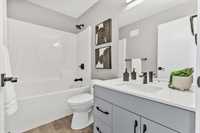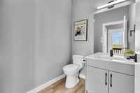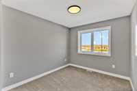 QUICK POSSESSION (MARCH 2026) NEW-BUILD FOR SALE: Built with the Hampton E plan, a popular home for first-time buyers that has it all. This plan offers an entertainment wall, quartz countertops in the kitchen and bathrooms, side-door entry, glass inserts on stairs, laminate flooring, and much more! The main floor starts with a seamless open-concept layout. The living room is generous and flows naturally into the spacious dining area and then into the intelligently-designed kitchen, allowing the home to be bathed in natural light from all sides. The kitchen is large, and offers beautiful cabinetry, quartz countertops, and breakfast bar. A corner pantry, mudroom and powder room complete the main floor. The upstairs layout is a 10 on 10 with the large primary bedroom located at one end for maximum privacy, offering a walk-in closet, and three-piece ensuite bath. The two additional bedrooms are located at the other end of the second floor, sharing a four-piece bathroom. Convenient second floor laundry is also upstairs. The basement is ready for development with 8’ ceilings and roughed-in plumbing. Don't miss out.