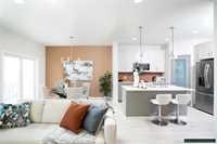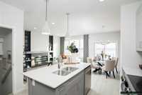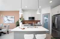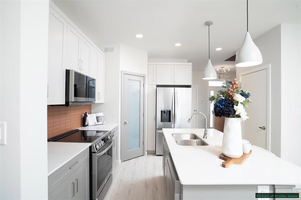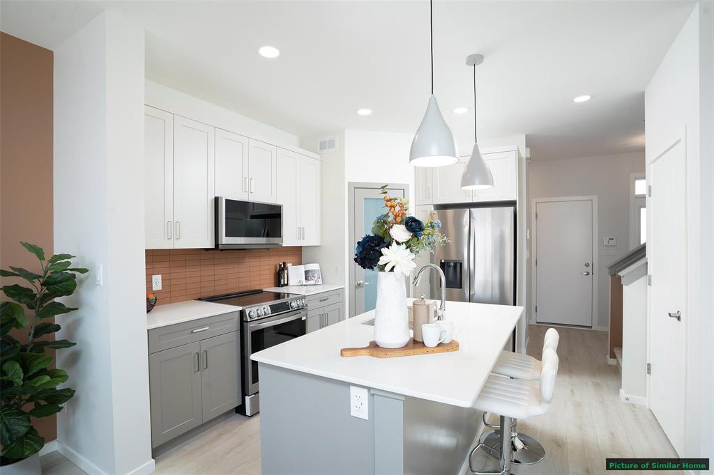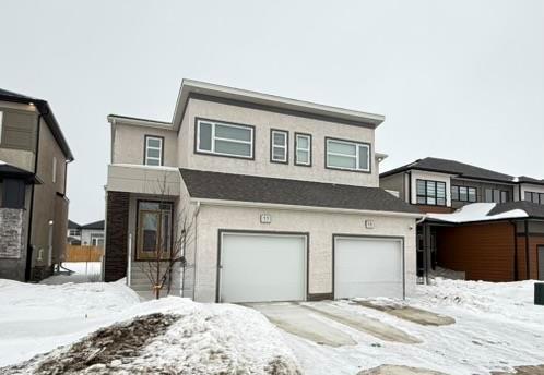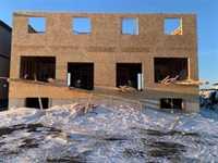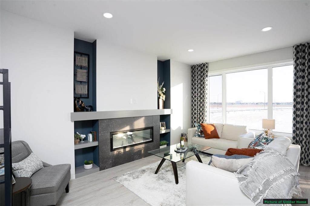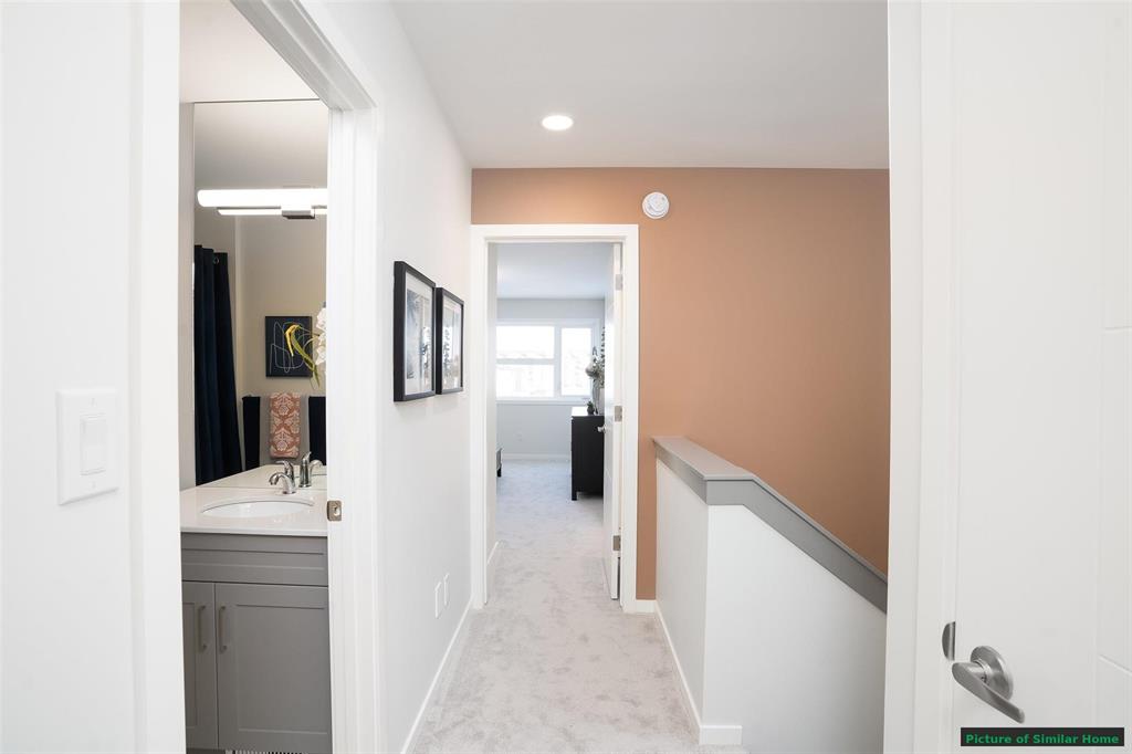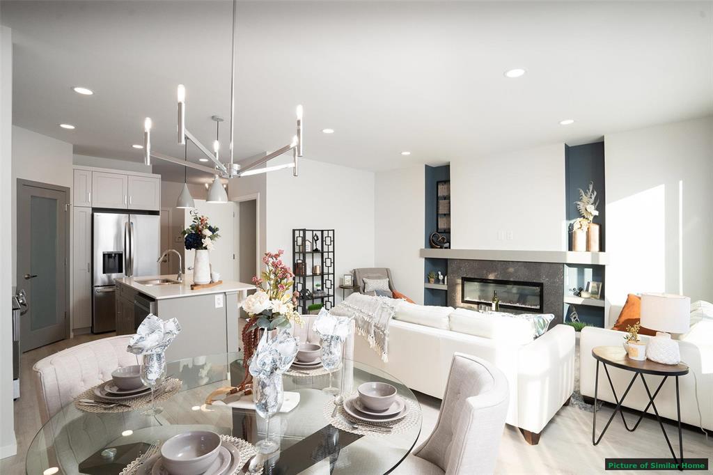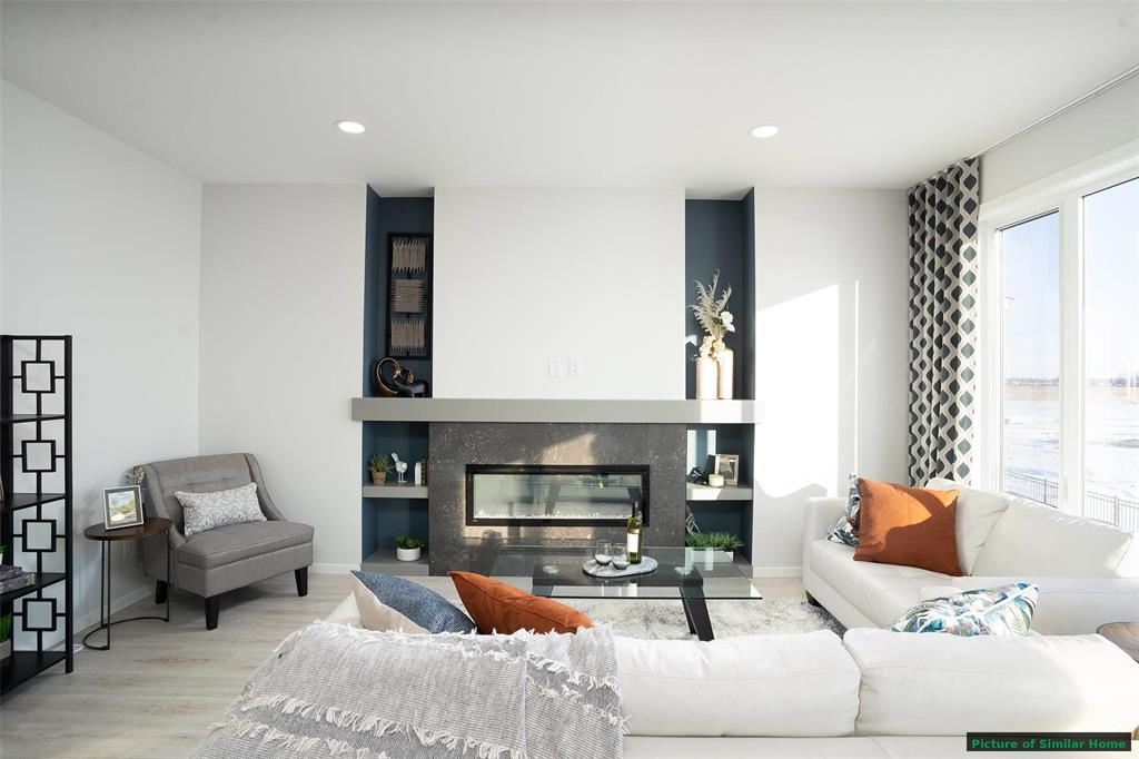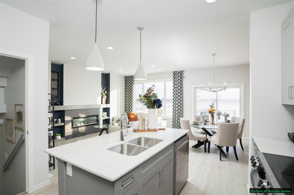 The Saffron III by A&S Homes offers 1468sqft of bright, open concept living in a 2 story side by side with a lookout basement overlooking the lake, thoughtfully designed for modern living! The main floor features 9 ft ceilings, oversized windows & smooth painted ceilings. The great room includes an upgraded fireplace entertainment unit & flows into the island kitchen with quartz countertops, extended flat bar top, 40.5" upper cabinets & a corner walk in pantry. Patio doors off the dining area lead to the backyard. Upstairs offers 3 beds, including a primary suite with walk in closet and spa inspired ensuite featuring a 5x3 ft shower with seating and clear glass doors. Convenient 2nd floor laundry is included, with basement rough ins for a future 2nd laundry set & sink. Built with quality in mind, this home includes a piled foundation, engineered floor joists, Delta MS foundation wrap, Tyvek exterior house wrap, 200amp panel, 10 potlights & insulated garage door with opener. Exterior include brick accents, prefinished wood trim, a full glass front door with sidelight & rear deck with aluminum railing. Home is under construction. Photos are of a similar home & comparable plan is available to view