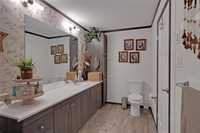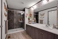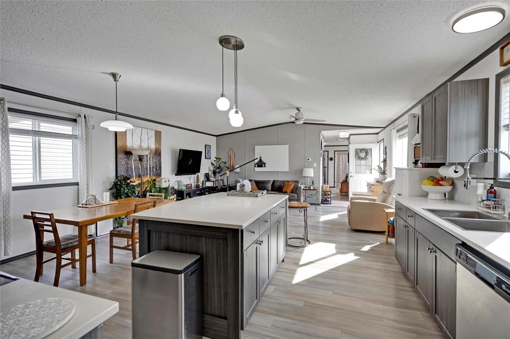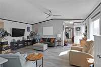 Sanford Meadowbrook Active Adult Community! Come and see this SRI Manufactured 1520 sqft 3 bedroom Home! 2 Baths, Great room Dining and Kitchen open Concept design! Kitchen features Quartz counter surfaces, lots of cabinetry with some glass details and Mosaic Ceramic tile backsplash, and a very spacious island. Kitchen appliances included! Primary bedroom has an unobstructed bedroom window view, spacious 3 piece ensuite with 5' shower with glass wall and oversized vanity counter surface. All three bedrooms feature lighted walk-in closets. Murphy bed in front bedroom remains. Bonus for this home is the family room area for those that want the second TV or Hobby space! Main floor laundry includes washer and dryer / Furnace room.