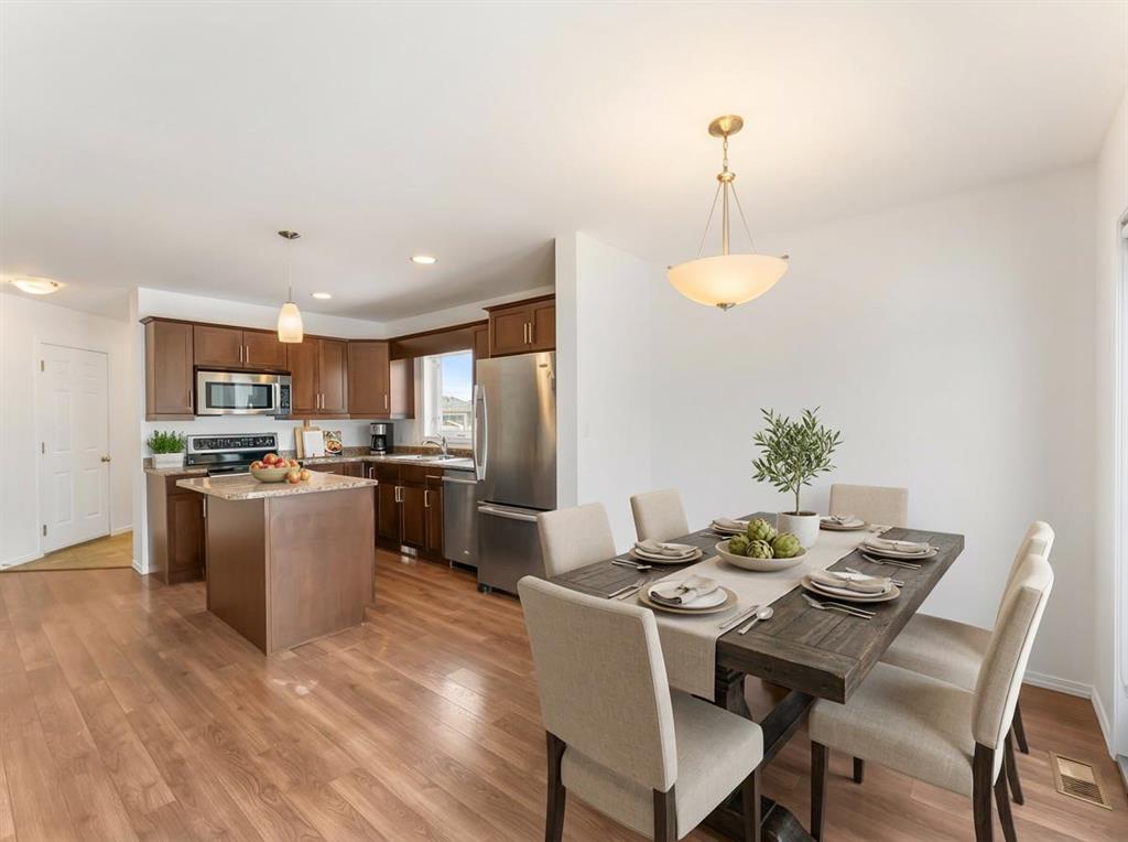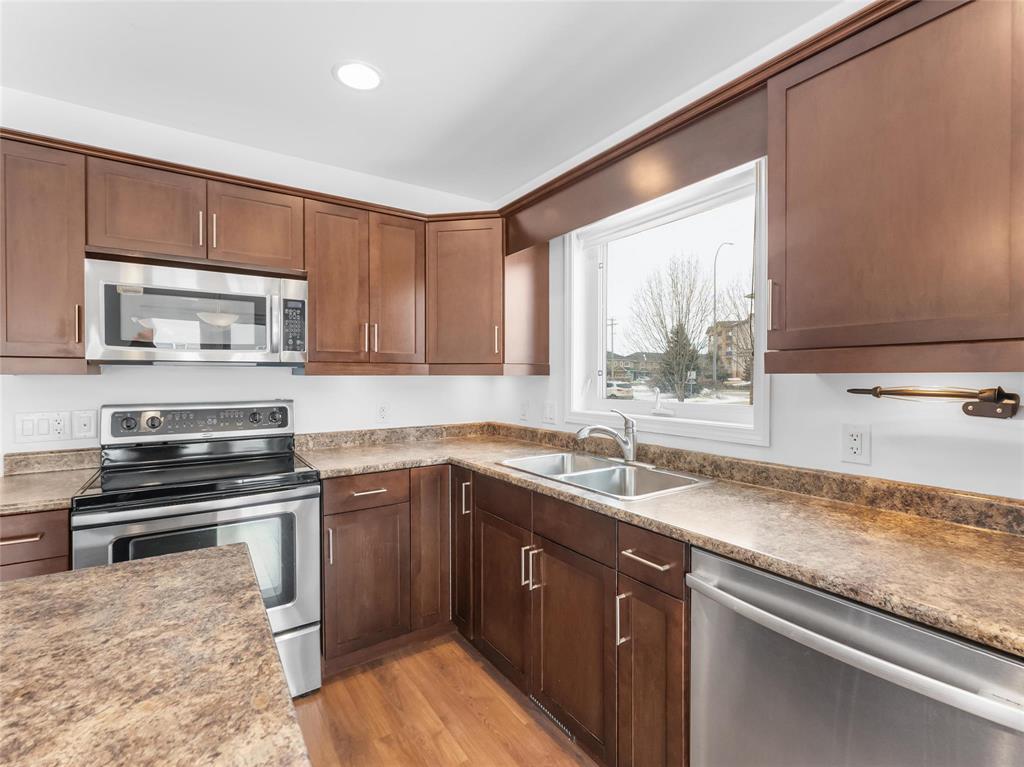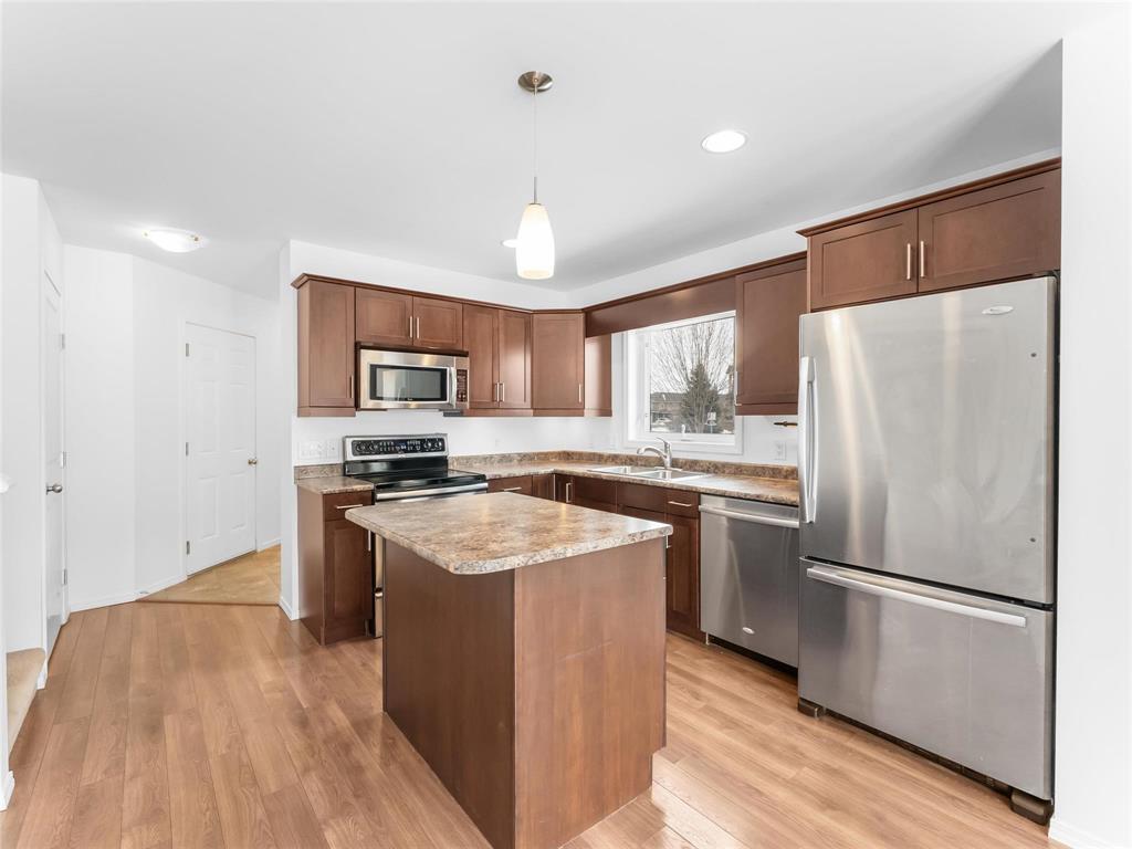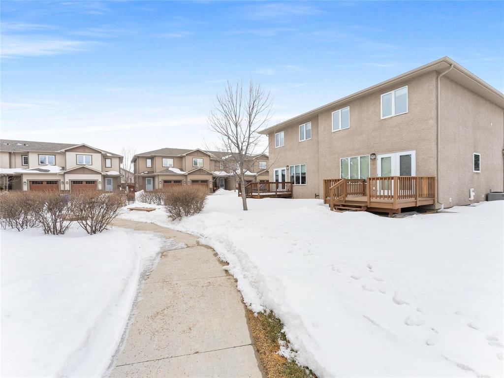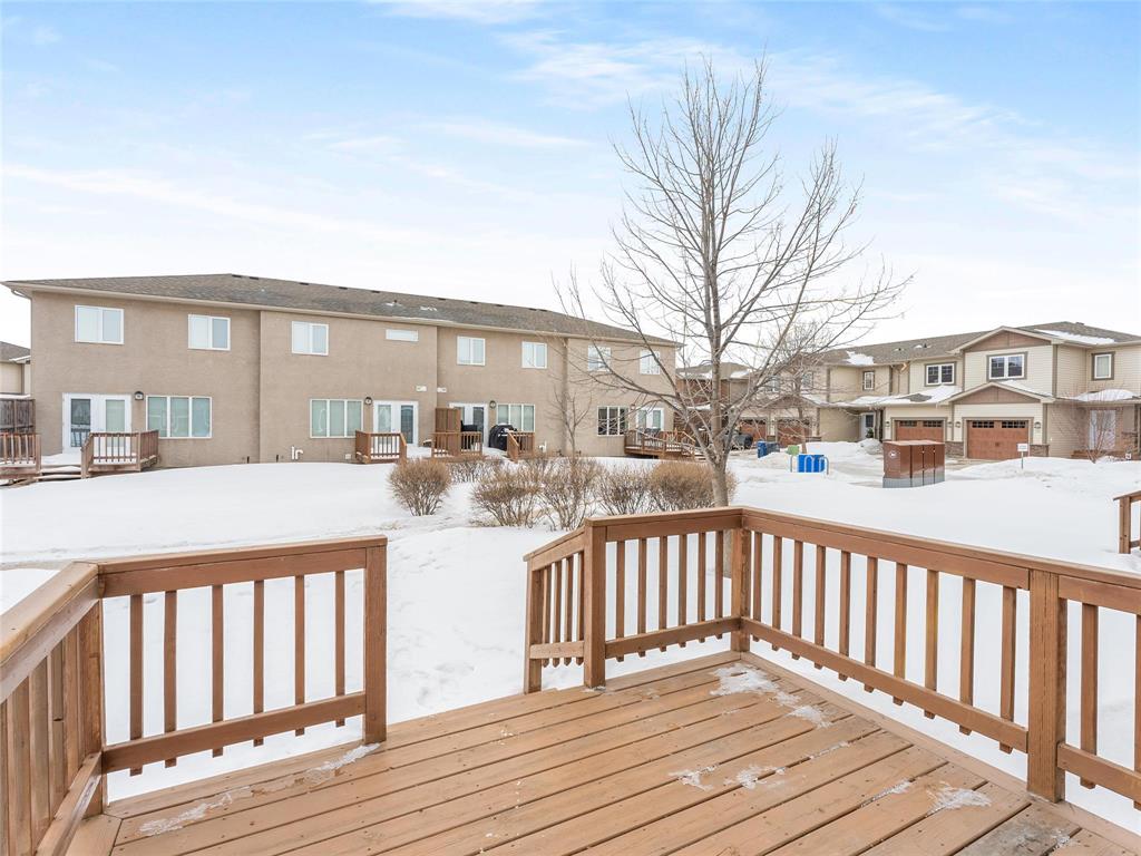 S/S now. Offers as received. Welcome to this beautifully maintained townhouse condo in desirable River Park South. Built in 2011, this bright and spacious home offers 3 bedrooms and 2.5 bathrooms with an open-concept layout perfect for everyday living and entertaining. The main floor features inviting living and dining areas, a modern kitchen with a large island, pot lights, and stainless steel appliances, plus a convenient 2-piece powder room. Attractive laminate flooring runs throughout the main level, while the upper level offers plush carpeting. The primary bedroom includes a walk-in closet + 3-piece ensuite, while the second and third bedrooms share a 4-piece bathroom and feature large windows for plenty of natural light. A second-floor laundry room. The fully finished basement offers a spacious rec room and large storage area. Patio doors off the dining area lead to a 10x10 deck backing onto a quiet courtyard. Additional features: attached single garage, visitor parking, pet-friendly, low condo fees, tri-pane windows, central A/C, central vac, and a structural wood basement floor. Located close to transit, schools, shopping, and minutes from St. Vital Centre. Some photos digitally staged.