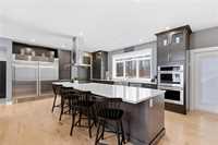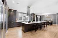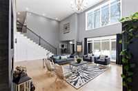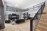The moment you walk in, the scale hits you. A grand entry with soaring ceilings and a sweeping staircase opens into an expansive living space anchored by a striking double-sided fireplace. The kitchen is built for gathering — oversized island, hidden walk-in pantry, and views that remind you why you chose this lifestyle in the first place.