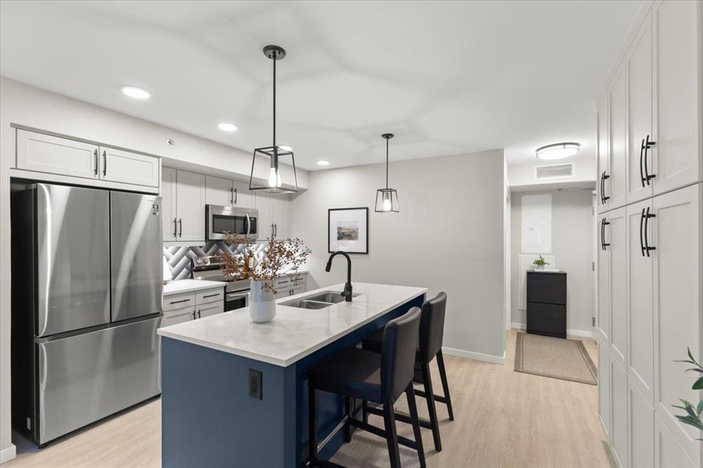 Welcome to 425-545 Dale Blvd. This stunning 2 bedroom 2 bathroom condo is located on the top floor with south west views. Features include spacious kitchen with quartz countertops, island, pantry and stainless steel appliances. Living room with vinyl plank flooring and garden door leading to large balcony. The primary suite has walk in closet with custom organizers, and 3 piece ensuite. The additional bedoom features large closet and two windows allowing tons of natural light. Other features include in suite laundry, underground parking, air conditioning, & additional storage locker. Nothing to do but move in!
