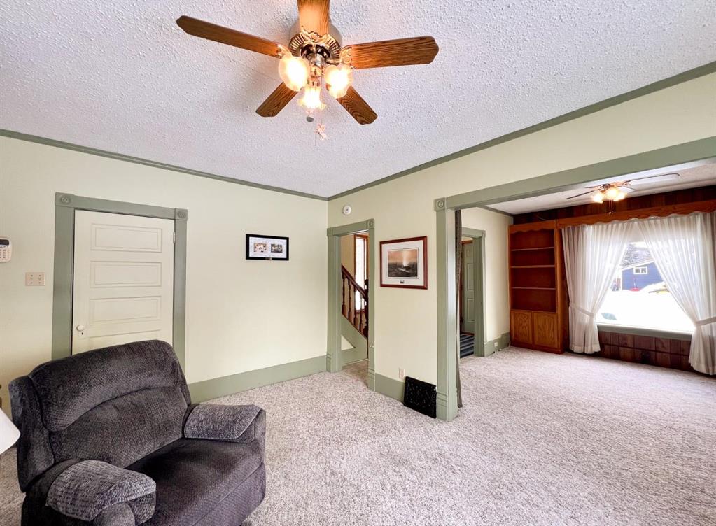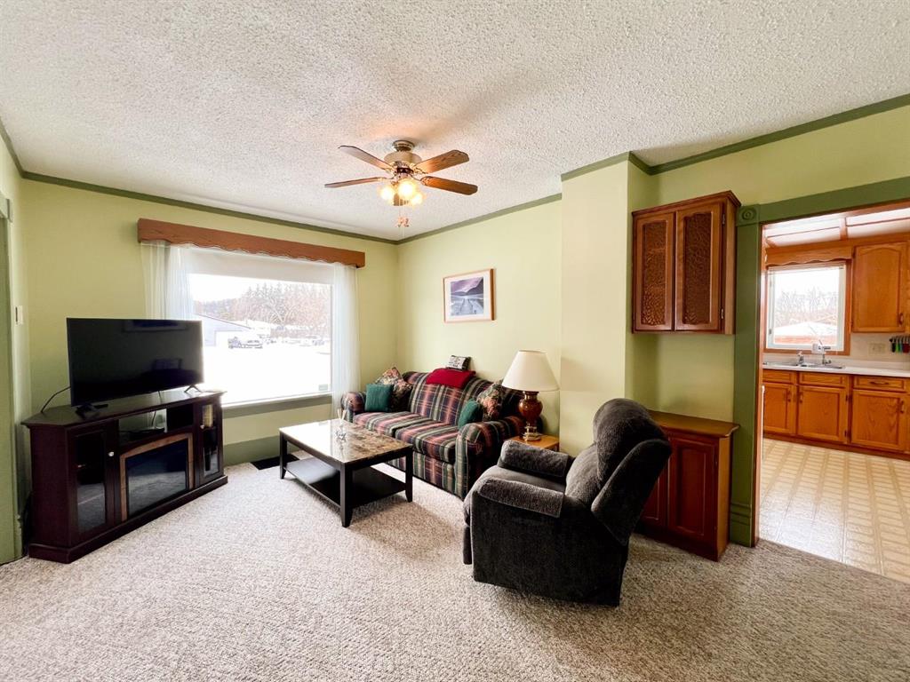 Charming two-storey home with beautiful views of the Pembina Valley hills and ski resort, situated on a spacious 150' x 120' corner lot! This inviting home features three bedrooms, a large eat-in kitchen, formal dining room, and bright living room perfect for both everyday living and entertaining. Original character shines through with a solid wood banister and ornate wood trim that preserve the home’s timeless appeal. Outside, you’ll find a detached single-car garage with workshop space and a back deck ideal for relaxing and taking in the stunning views.