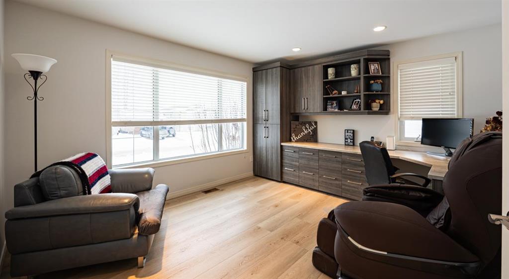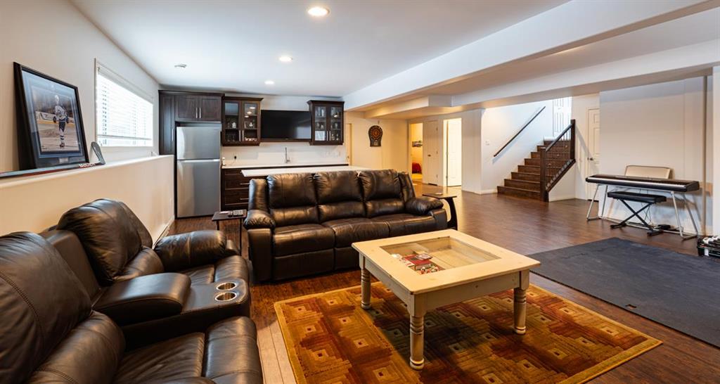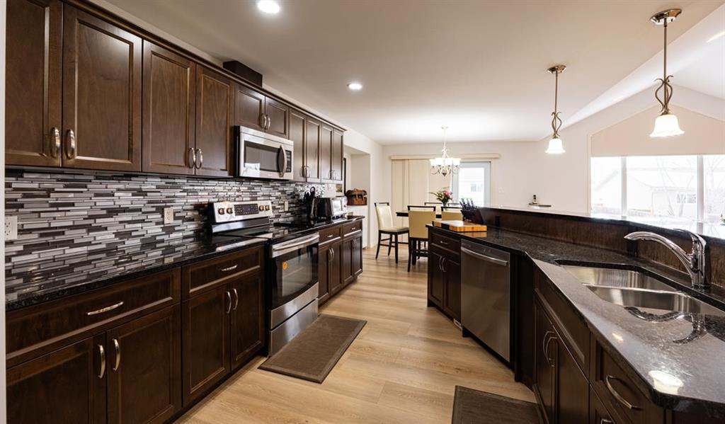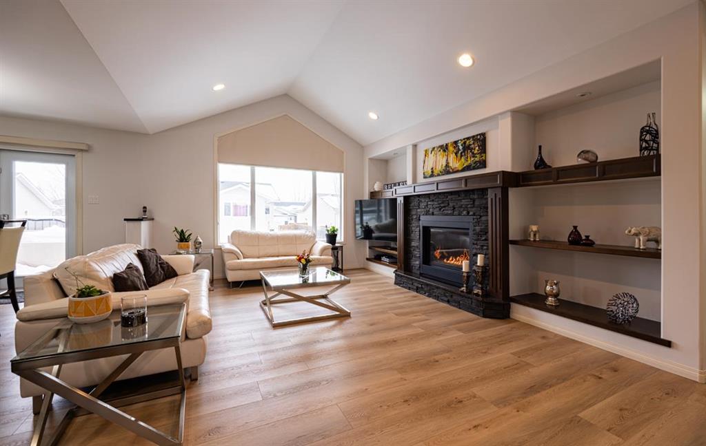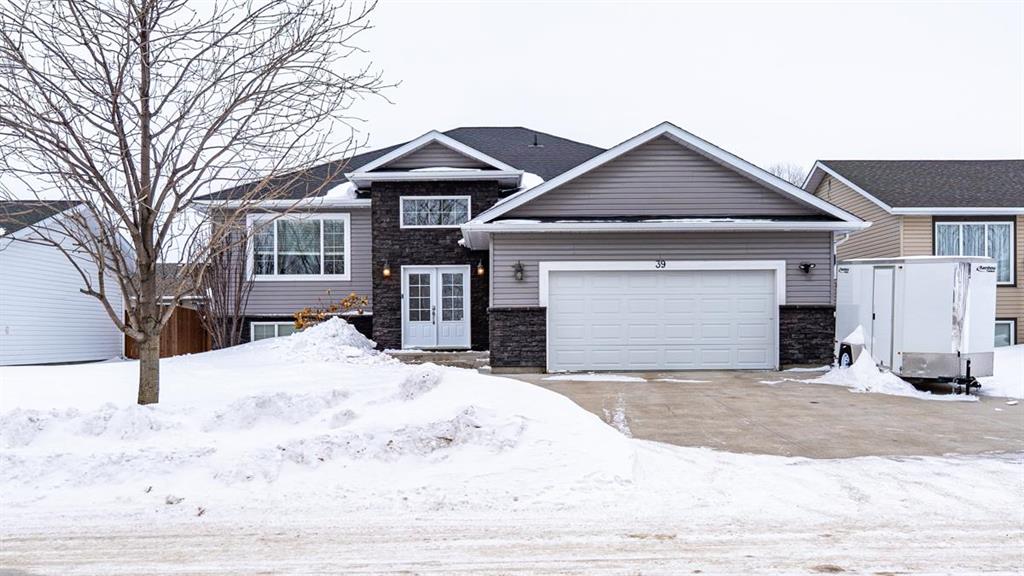Welcome to 39 Cadham Bay, an impressive 1,807 sq ft bi-level designed for comfortable living and effortless entertaining. Enter through French doors into a spacious front foyer that sets the tone for the space and functionality found throughout. The upper level features a bright open-concept great room with a gas fireplace, dry bar with wine fridge, and a well-appointed kitchen with stone countertops, perfect for both everyday living and hosting. Also on the main floor is a front office with built-ins, an ideal work-from-home space, the primary bedroom featuring a walk-in closet and 3-piece ensuite, a second generously sized bedroom, 4-piece bathroom, and convenient main floor laundry. The fully finished lower level offers exceptional additional living space with a large rec room complete with wet bar, fridge, and island, creating the ultimate gathering area. This level also includes two large bedrooms, a versatile room that could serve as an additional office, or den, and another 4-piece bathroom. Step outside to enjoy the fully fenced backyard with deck and hot tub, offering a great space to relax or entertain. The extra-wide driveway adds to the overall functionality of this well-designed home.