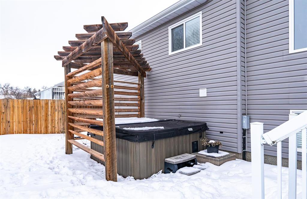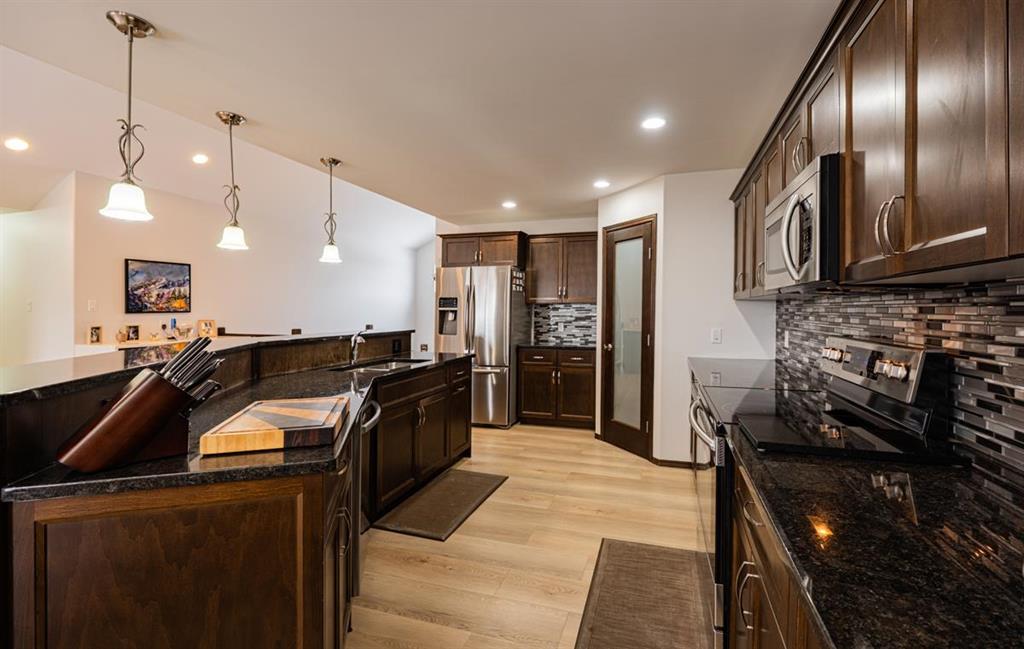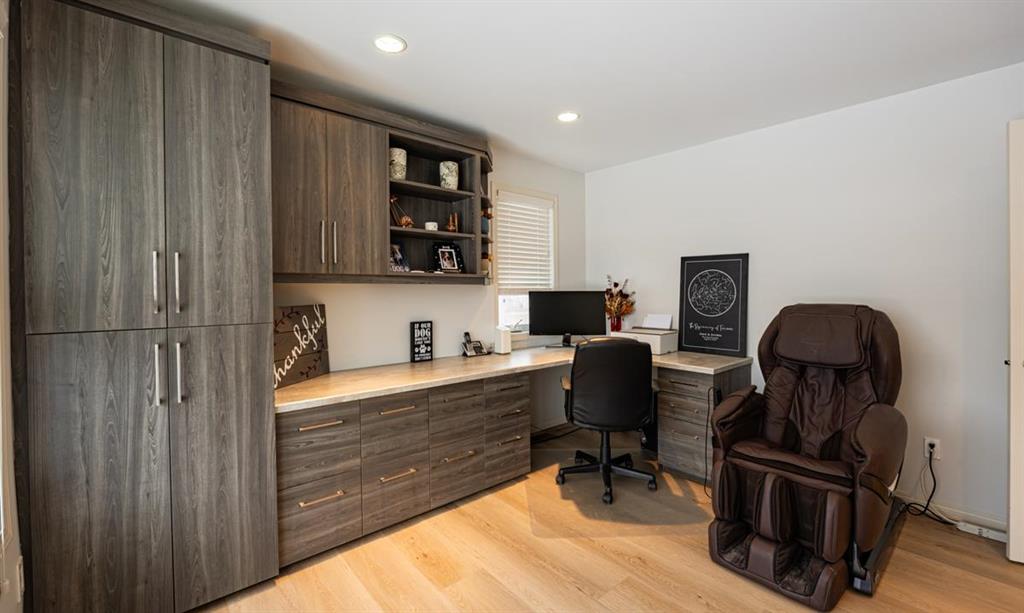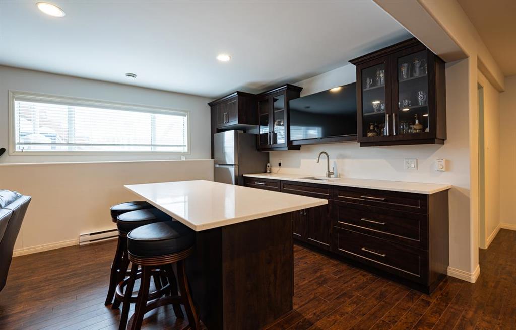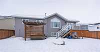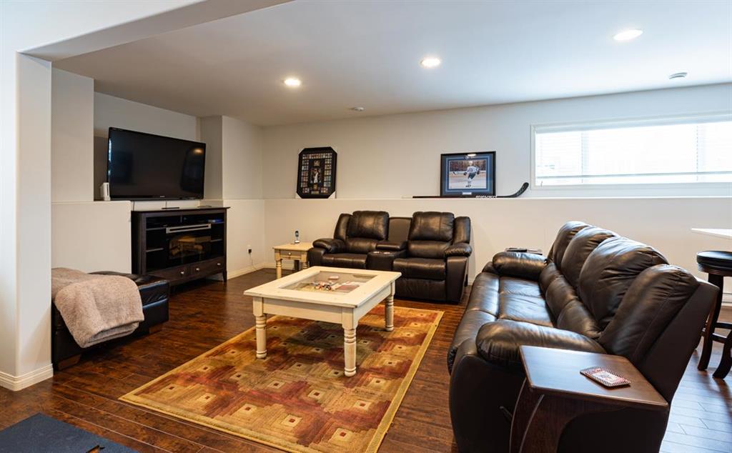 Welcome to 39 Cadham Bay, an impressive 1,807 sq ft bi-level designed for comfortable living and effortless entertaining. Enter through French doors into a spacious front foyer that sets the tone for the space and functionality found throughout. The upper level features a bright open-concept great room with a gas fireplace, dry bar with wine fridge, and a well-appointed kitchen with stone countertops, perfect for both everyday living and hosting. Also on the main floor is a front office with built-ins, an ideal work-from-home space, the primary bedroom featuring a walk-in closet and 3-piece ensuite, a second generously sized bedroom, 4-piece bathroom, and convenient main floor laundry. The fully finished lower level offers exceptional additional living space with a large rec room complete with wet bar, fridge, and island, creating the ultimate gathering area. This level also includes two large bedrooms, a versatile room that could serve as an additional office, or den, and another 4-piece bathroom. Step outside to enjoy the fully fenced backyard with deck and hot tub, offering a great space to relax or entertain. The extra-wide driveway adds to the overall functionality of this well-designed home.