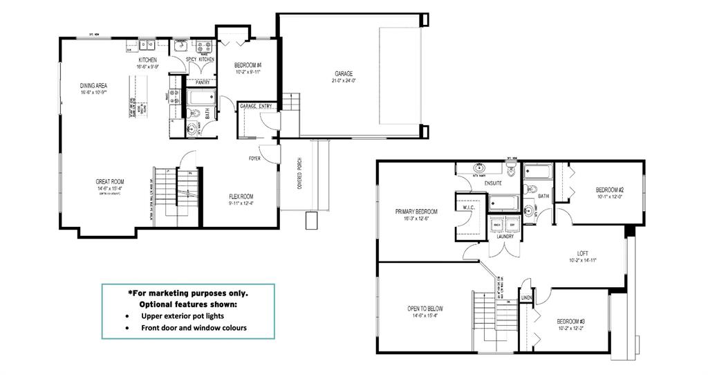 ***First-time home buyers are entitled to a 5% GST rebate on the purchase price *** The Granville B-24! This 2,214 sqft modern prairie-style home features an ultra-modern, stylish exterior with amazing curb appeal. The interior features a very spacious, open-concept layout with 9' ceilings, versatile flex room, a private main floor bedroom & full bathroom for multigenerational families or as an office space for remote work, an oversized rear great room with 19' ceilings & huge upper & lower rear windows, a large rear dining area with 3-wide 8' tall patio doors, a huge island kitchen & a SPICY KITCHEN with sink, range & pantry located off the main kitchen. The 2nd floor features, 9ft ceiling, two large front bedrooms with a spacious loft, conveniently located 2nd-floor laundry, and a private primary bedroom with a large walk-in closet and huge private ensuite bathroom. This brand-new design has quickly become a best-seller due to its versatile layout, stunning exterior detailing, and unique features! The Granville is a one-of-a-kind home perfect for families of any size!
