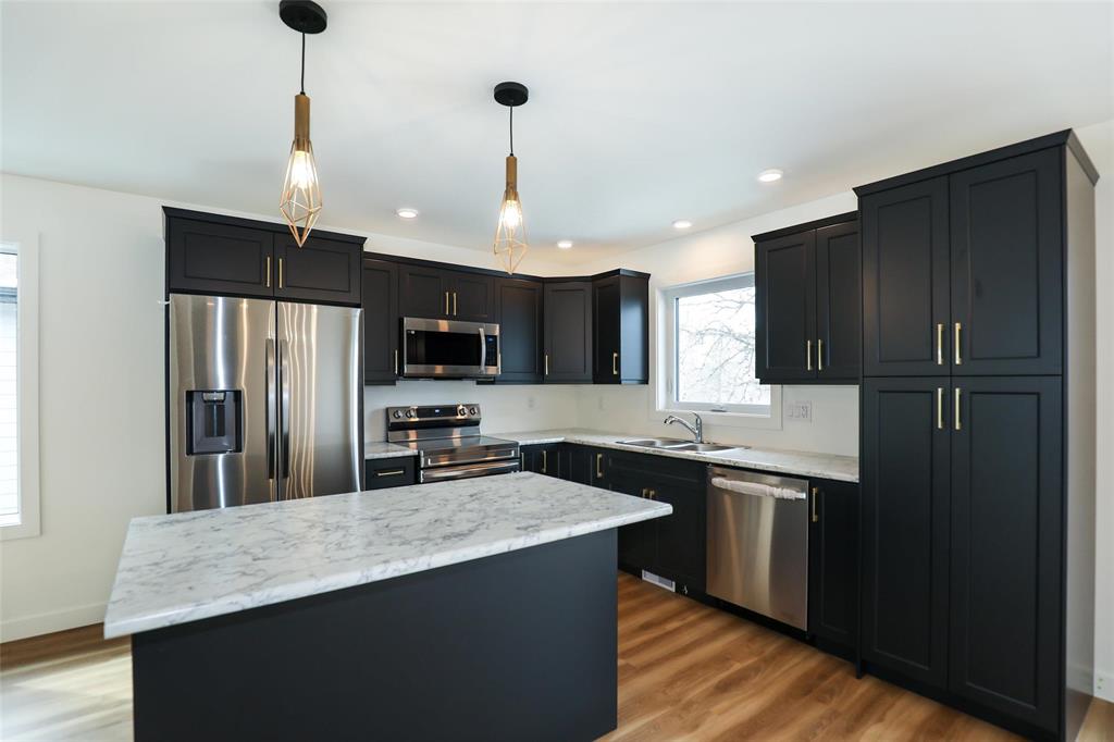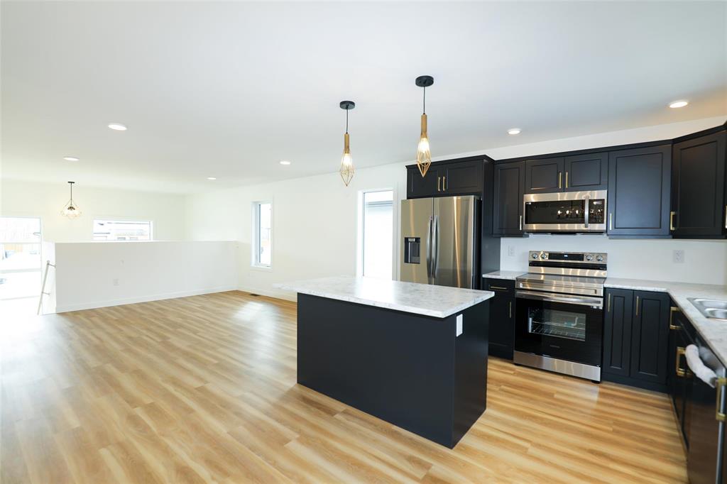 Affordable New Build in a Fantastic Neighbourhood! This thoughtfully designed 1,105 SF bilevel is perfect for first-time buyers or downsizers. The main floor offers 2 bedrooms and 2 full baths, plus a spacious front entry. Enjoy the bright open-concept living space, featuring a stylish kitchen with custom cabinetry, soft-close drawers, a large island with bar seating, and dining area with patio doors to your future deck. The full basement comes insulated, ready for your vision. With the potential for 2 additional bedrooms, full bath, and a large family room, this is a great opportunity to build equity.
