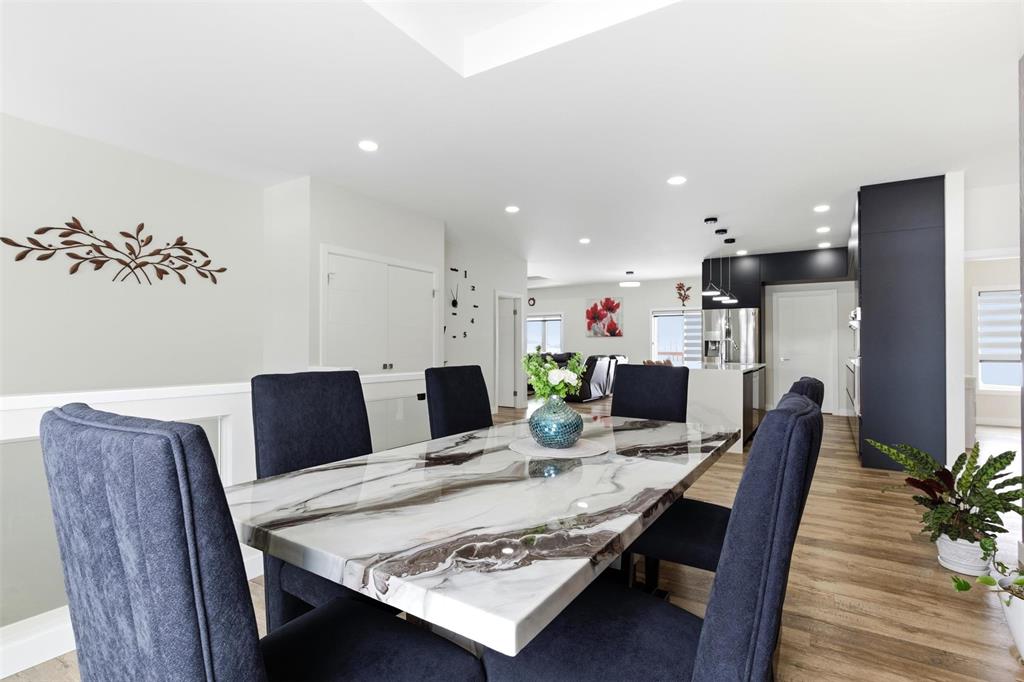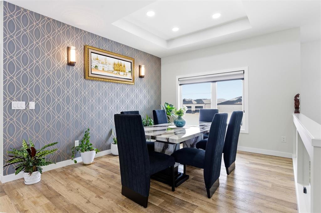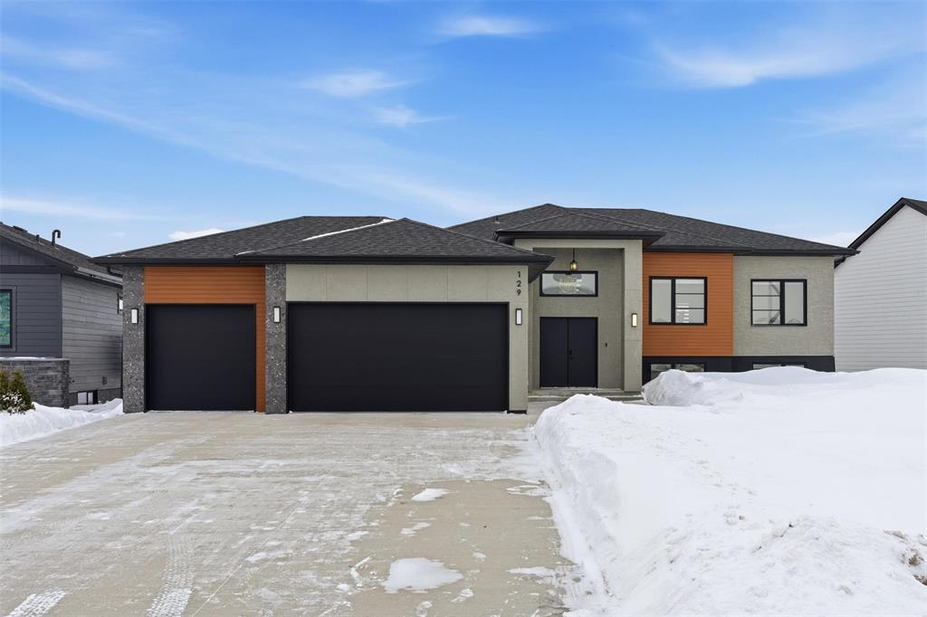 Welcome to 129 Wyndham Estate Drive in Steinbach where design meet luxury with tons of space in this 5 bedroom, 3 bathroom home in Steinabach's most desirable neighbourhoods. This custom-built home offers 1,860 sqft on the main floor with a clean, modern design and elevated finishes throughout. The kitchen makes a statement with dark cabinetry, white quartz countertops, a waterfall-edge island, and a separate butler’s kitchen to keep hosting seamless and clutter out of sight.