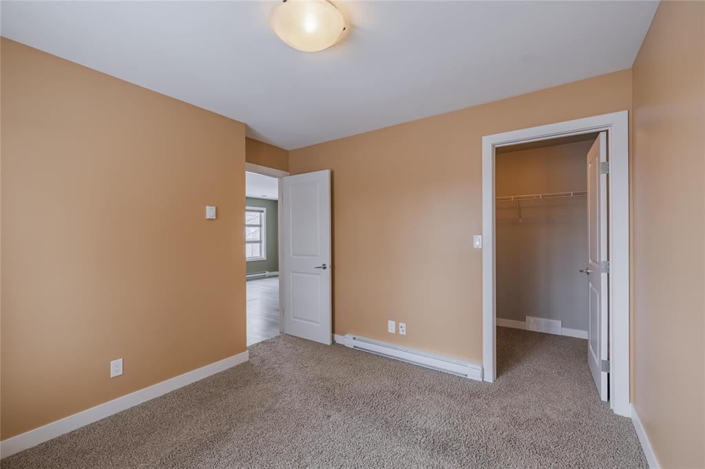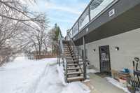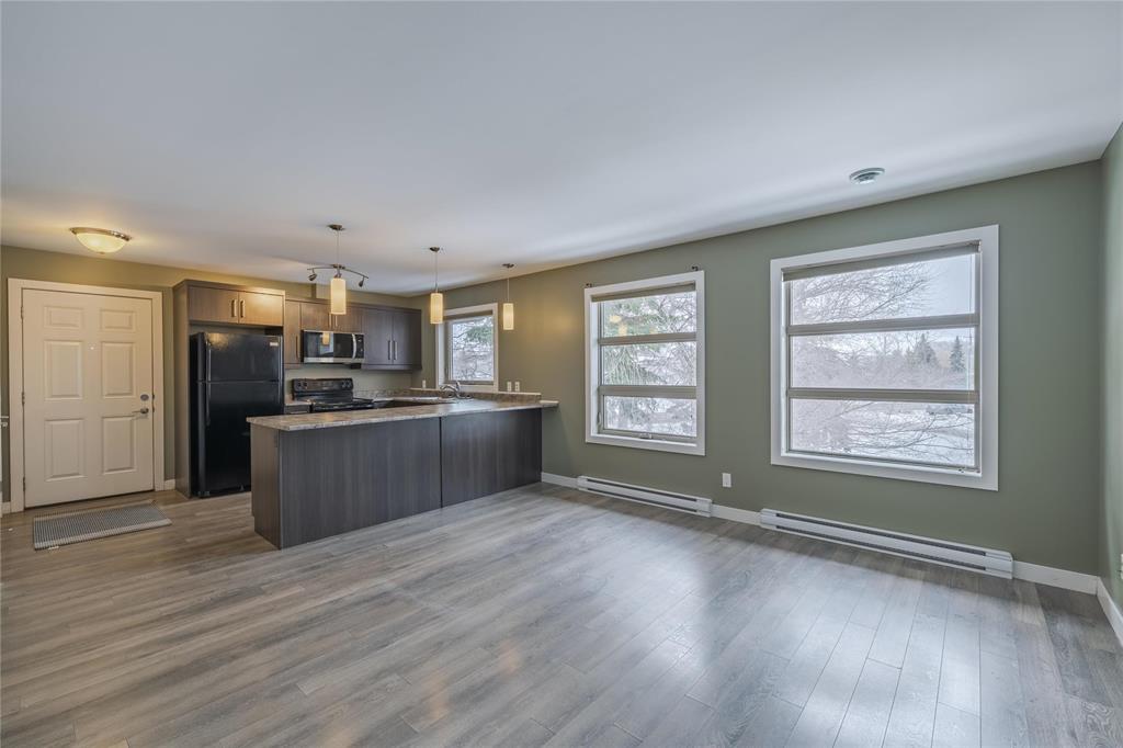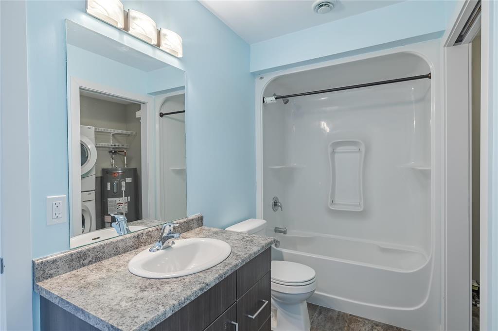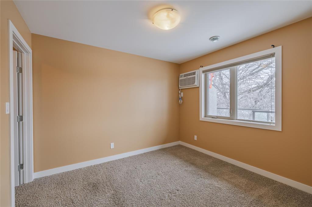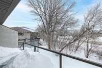 This trendy urban loft–style one bedroom condo is perfectly located close to all amenities and offers an efficient layout designed to maximize every square foot. The unit features a second-floor entrance and a spacious oversized patio with sleek glass railings overlooking mature trees — the perfect spot to relax and unwind. Inside, you’re welcomed by laminate flooring, massive windows that flood the space with natural light, and a bright open feel throughout. The espresso kitchen offers ample cabinetry, a large pantry, generous storage, and a convenient eating area. The spacious bedroom area includes a large walk-in closet providing excellent additional storage. The well-appointed 4-piece bathroom offers direct access to the laundry room for added convenience. One outdoor parking stall w/ Convenient visitor parking close by Recent updates include fresh paint throughout, a Hwt (2025), microwave (2025), and a newer dishwasher and wall a/c unit offering added value and peace of mind. Immediate possession available