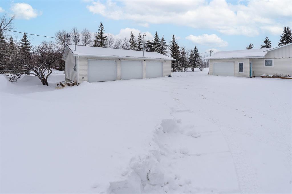SS Mar 2/OH Mar 8 2-4/OTP Mar 10 This stunning estate in the RM of Ste Anne is sure to please! The property includes a beautifully maintained 1440 ft.² bungalow, a single att garage & a triple det gar, two sheds, vegetable garden, fruit trees, and so much more! The south and West views through the beautiful tripane windows will delight you day and night! A double tree line around the property provides privacy and protection from the elements. The home feat a country-sized kitchen w/wrap around counter providing ideal access to the adjoining family-sized dining room. A special feature is the built-in coffee centre! The dr opens to the lovely living room that gives great views of the yard and wildlife. The primary bedroom is huge with double closet and 3 pce ensuite bath. The second br is large and beside the main floor 4 pce bath. There is even main floor laundry! The bsmt is fully fin with huge family room, a gym area, two large brs and a 4 pce bath. Outside you’ll find a heated insulated triple garage w/workshop, floor drain and 220 power. There’s also an oversized single attached gar. Between the tree lines is a great play area with play structure and trampoline!
