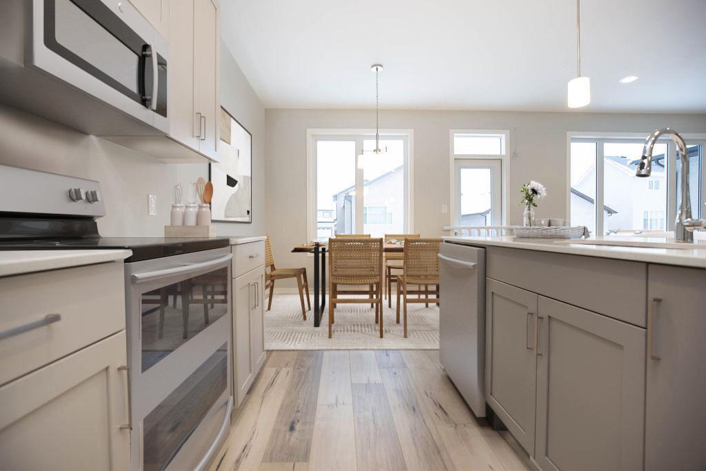 Welcome to this stunning new design from A&S Homes. This family sized home offers a double attached garage, 4 bedrooms, 3 full baths, a 2nd floor loft and includes a full main floor bedroom and bathroom- perfect for guests or in-laws! Step inside the modern glass front entry complimented by extra windows to open the space. The open concept living & dining area will feel bright and open thanks to the 9ft ceilings, large windows, and our designer lighting package which features modern LED pot lights and pendant lights. The thoughtfully designed kitchen features a step-in pantry, maple cabinetry, plenty of storage space and a large island. Heading upstairs, the primary suite is privately located off the back of the home and offers a spacious walk-in closet and ensuite. Two additional bedrooms come with generous closets and double windows, alongside a bright, airy loft! Optional basement or second-floor laundry!