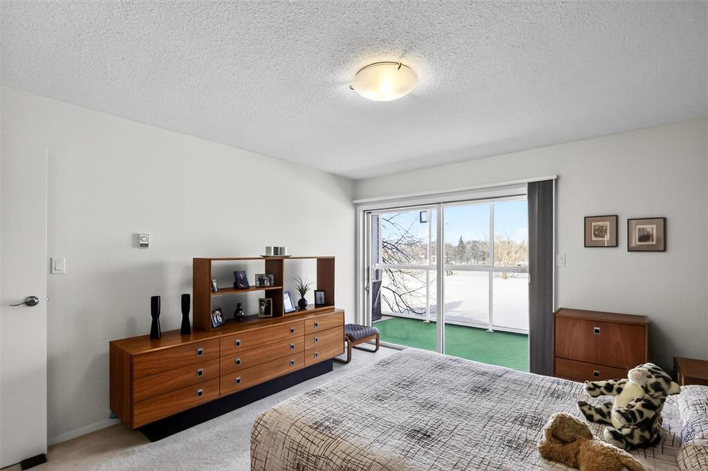PRISTINE ORIGINAL OWNER CONDO OVERLOOKING THE GOLF COURSE. Perfectly positioned along the Red River in St. Vital's most desirable location is this impressive 1,287 sq ft unit. This beautiful suite is among the largest in the complex & features 2 beds, 2 full baths & generous rm sizes. CLICK ON MEDIA ICON TO VIEW 3D TOUR! Sunlight fills the living space, where the fireplace creates a warm focal point & oversized patio doors open to a spacious balcony. The well designed kit w/matching appliances flows into a versatile flex rm currently styled as a sitting area. This flex space offers endless possibilities, whether used as a breakfast nook, home office, den or expand the kit w/an island! The primary bed features private access to a 2nd balcony, a walk through closet & 3pc ensuite. 2nd bdrm & full 4pc main bath w/jetted soaker tub. Pride of ownership is enhanced by custom California Closets, updated Central A/C '19, fridge '19, washer '24. Includes 1 indoor parking stall in heated common garage & extra storage space. Condo fees incl all utilities. Exceptional space, great views & location close to walking paths, parks & everyday amenities. Call today for your private showing!