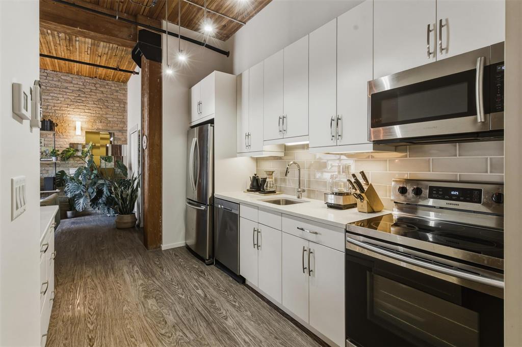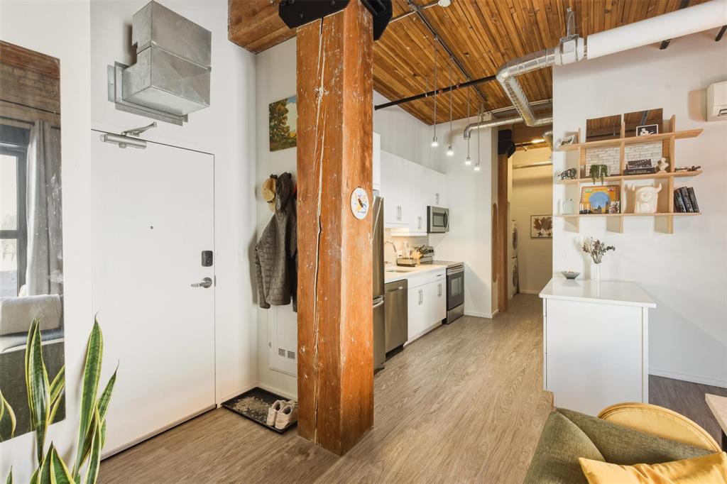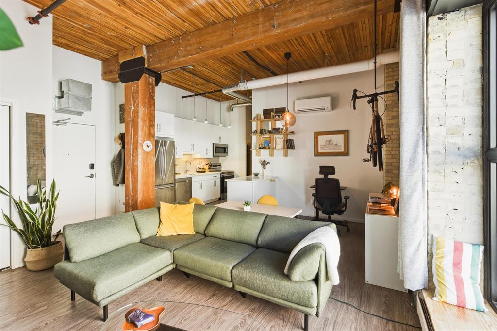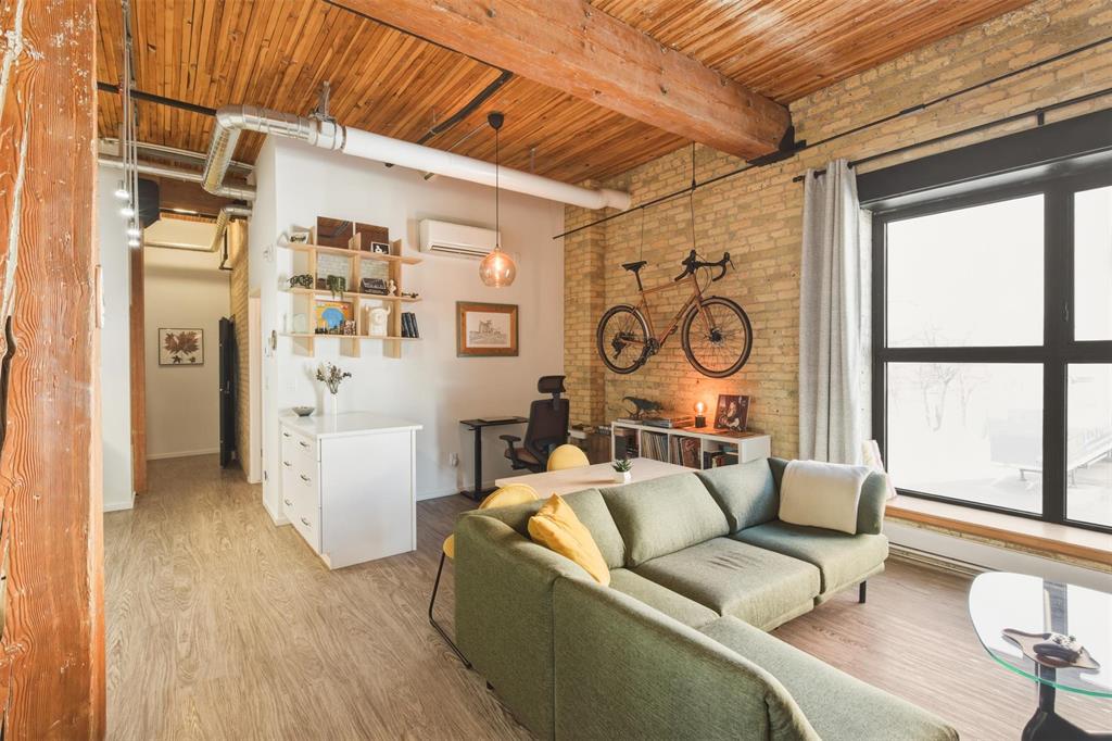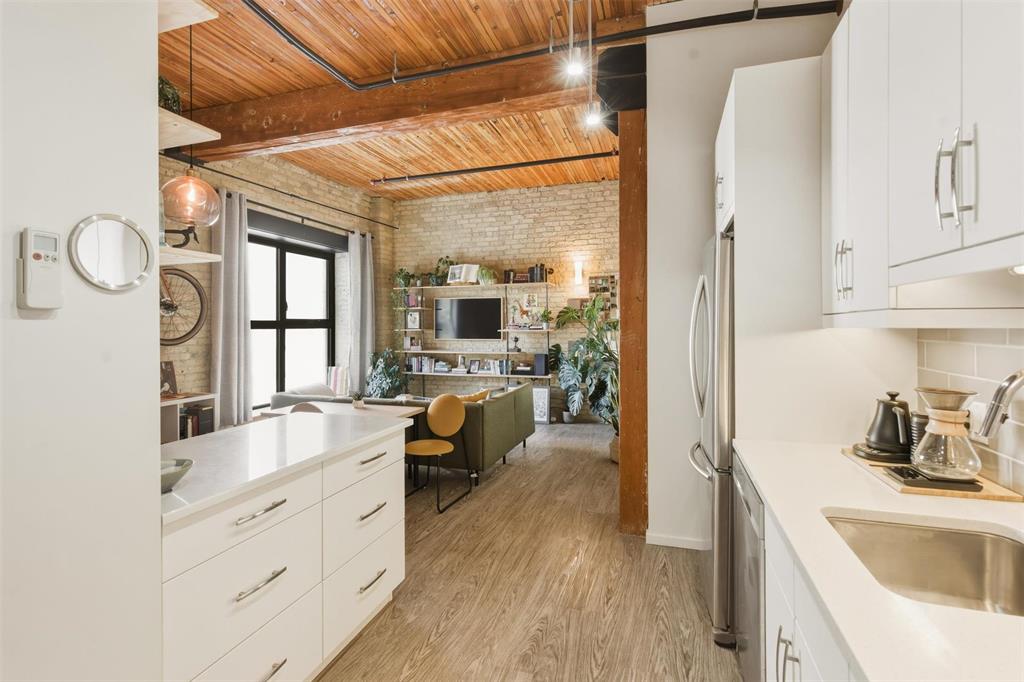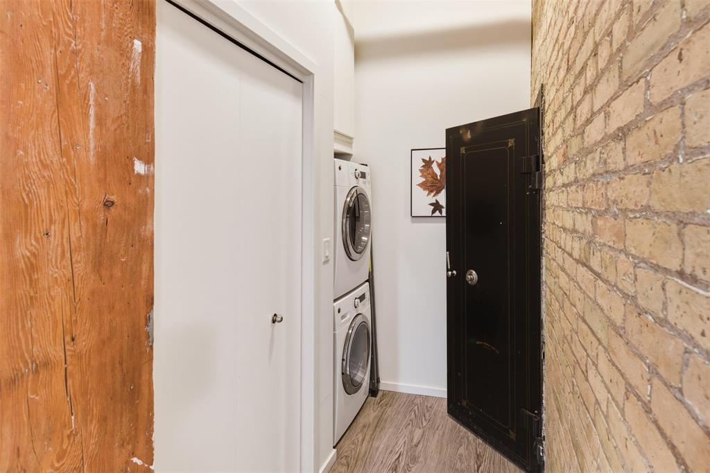 OTP March 9. Incredible opportunity to own in the vibrant heart of the Exchange District! Just steps from renowned theatres, fantastic restaurants, and an easy walk to The Forks, Canada Life Centre, Blue Cross Park, and Qualico Training Centre, this location delivers the ultimate urban lifestyle. This stylish 721 sq ft condo offers a bright, open-concept living and dining area highlighted by an oversized window that floods the space with natural light. The modern kitchen features sleek quartz countertops and stainless steel appliances, including fridge, stove, dishwasher, and microwave, perfect for everyday living or entertaining. The spacious primary bedroom is truly one of a kind, showcasing an original vault door that adds distinctive character and historic charm. The 4-piece bathroom includes a tub surround and generous shelving, while convenient in-suite laundry adds everyday ease. Durable vinyl plank flooring flows seamlessly throughout. Enjoy exceptional building amenities such as a fully equipped gym, games room, rooftop patio with city views, and additional storage. Whether you're seeking the perfect Pet Friendly downtown home or a savvy investment, this is urban living at its best.