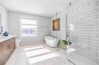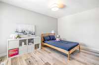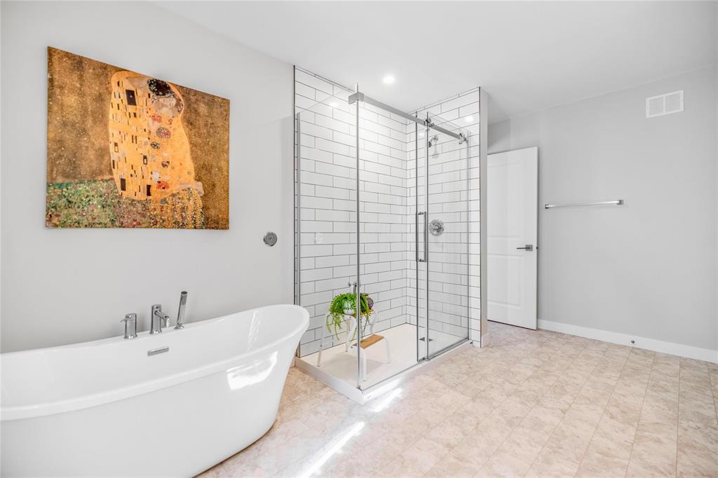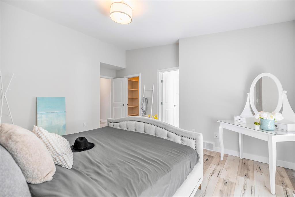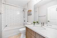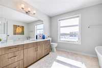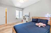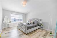 A standout feature is the walk-out basement overlooking the lake, with a large balcony above—perfect for relaxing, reading, or enjoying peaceful sunset views. The main floor showcases Luxury Vinyl Plank flooring and a modern kitchen with quartz countertops, tile backsplash, and ample cabinetry. Large windows bring in abundant natural light, complemented by the south-facing backyard. Upstairs offers laminate flooring throughout, convenient second-floor laundry, and a primary bedroom with a 4-piece ensuite including both shower and bathtub.