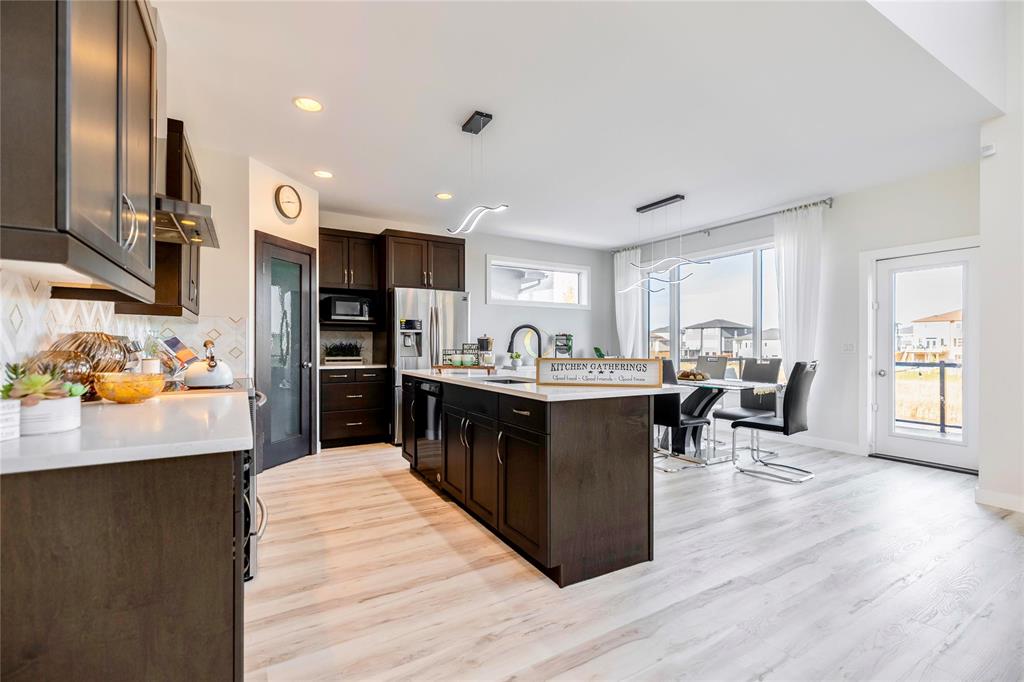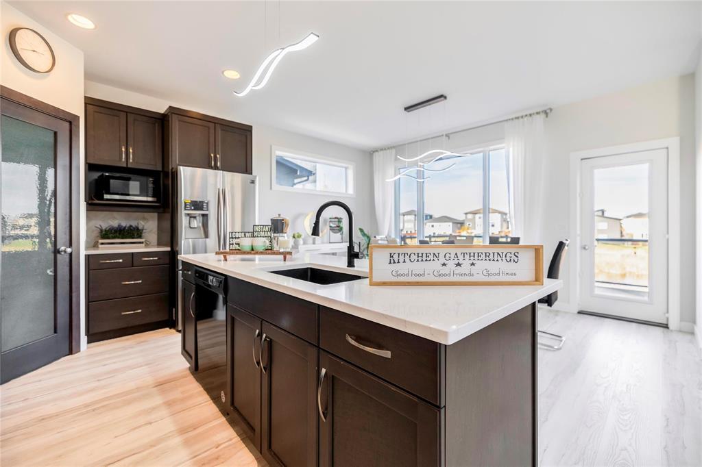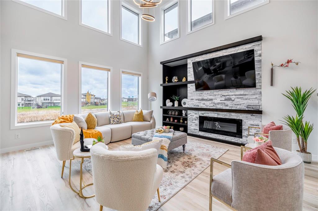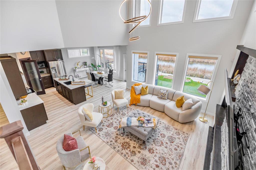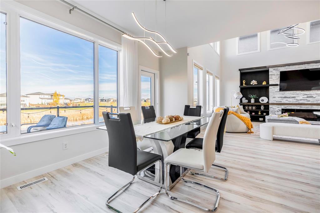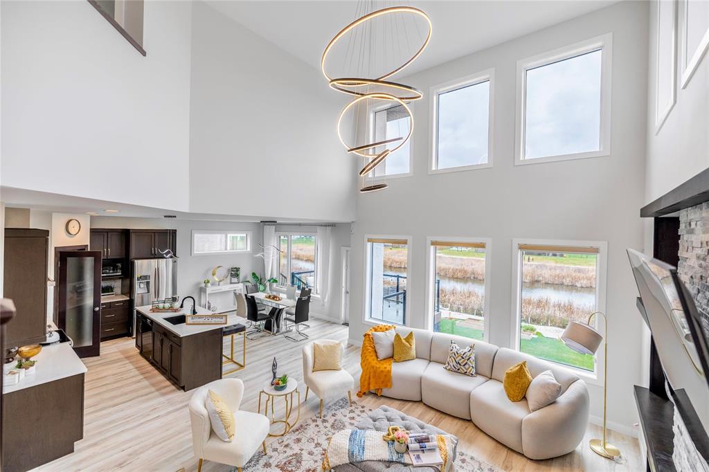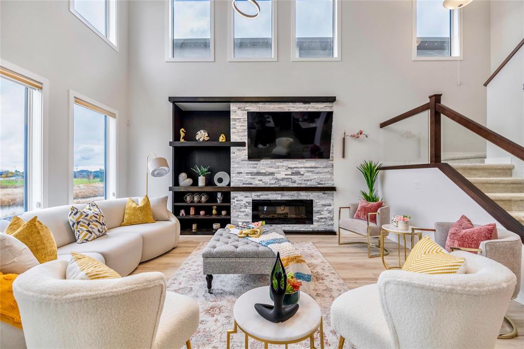 Offers as received. OPEN HOUSE MARCH 21&22, SAT&SUN 2-4PM. Welcome to this stunning two-storey walkout home located in the highly desirable South Pointe. Featuring 5 spacious bedrooms and 3.5 bathrooms with many upgrades. The main floor impresses with 18-foot ceilings in the great room, large windows that flood the space with natural light, and a cozy fireplace that adds warmth and charm. The modern kitchen is a chef’s dream, with quartz countertops, maple cabinets, stylish backsplash, walk-in pantry, and luxury vinyl plank flooring throughout. A bright dining area opens to a large deck with serene lake views, perfect for relaxing or entertaining. The main floor also includes a functional den, ideal for a home office or study. Upstairs offers four generously sized bedrooms, including a luxurious primary suite with a walk-in closet and delux ensuite featuring soaker tub, glass tiled shower, and tile flooring. The fully finished walkout basement with 9' ceiling, a spacious rec-room, an additional bedroom, a full bathroom, and wet bar, ideal for entertaining or guests. Walking distance to school, close to parks, shopping and more. A rare opportunity, book your showing today!