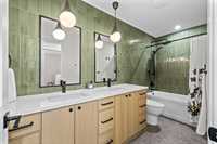 Beautifully crafted 4-bedroom + main floor office, 3.5-bath luxury home offering 2,183 sq ft of sophisticated living between Grosvenor & Kingsway. New construction with timeless appeal, the striking exterior boasts a stone façade, timber accents & snap lock metal roof. 10' ceilings on the main level elevate the space, anchored by engineered hardwood floors & a custom stone fireplace with floating shelves. The kitchen features custom white oak cabinetry & quartzite counters with premium appliances. A bonus den on the main floor makes the perfect home office. The finished basement offers 9' ceilings, a spacious rec room with wet bar for entertaining, 4th bedroom, full bathroom & room for a gym or potential 5th bedroom. Upstairs, the primary suite impresses with dual walk-in closets, large windows & ensuite complete with tiled steam shower, soaker tub, double vanity, water closet, & heated flooring. The second & third bedroom are spacious, with walk-in closets & the second bathroom with dual vanities gives your kids room to grow. The yard features a large deck plus future patio & sodded area, & fencing (spring 2026) & an oversized double garage with matching metal roof.