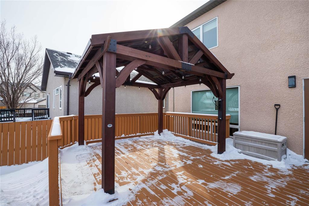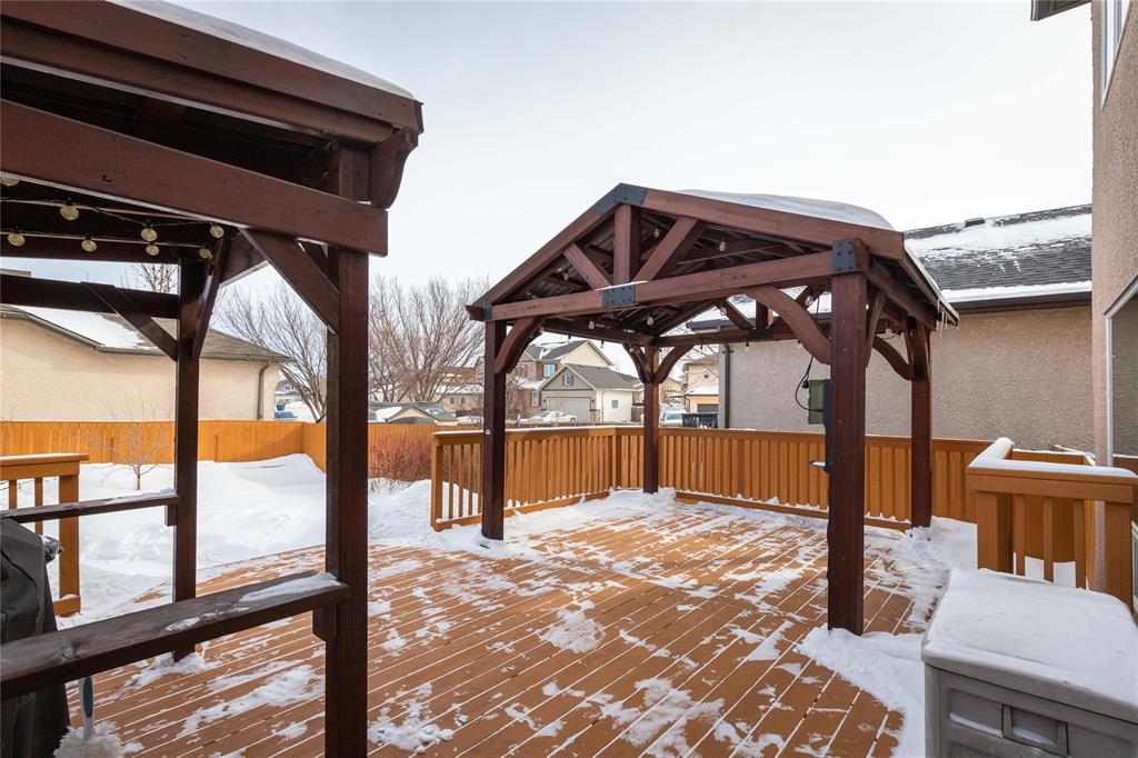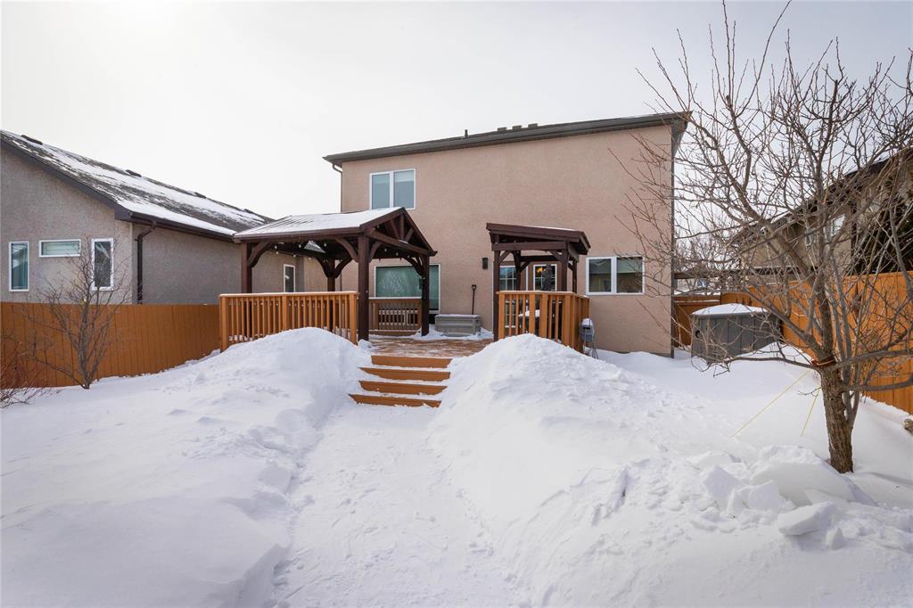 Offers March 9th. Meticulously cared for 1752 sqft 4bdrm 3.5 bthrm two storey w/over $30,000 of builder upgrades at the time of build and additional upgrades in the last 3 years.Step inside to large tile foyer, formal dining room off to the left with hrdwd flooring & bay window letting in an abundance of natural light.Open concept main living area offers huge eat in kitchen featuring plenty of counter & cabinet space, granite counters, walk in pantry, tile backsplash, island w/seating for 2, dining space & patio door leading to your fully fenced backyard, custom gazebo & bbq hut. Living room features gas brick facing fireplace, entertainment unit & hrdwd flooring.2 pc powder room, convenient main floor laundry & access to your insulated & drywalled dbl att garage.Huge primary bdrm upstairs w/bay window, 3 pc ensuite & walk in closet.2 more spacious second floors bdrms w/ample closet space & 4 pc bthrm.Fully finished basement w/rec room, 4th bdrm, 3 pc bathroom & plenty of storage.Additional features & upgrades:Triple pane windows throughout, hi efficient furnace, central air, Shingles/soffit/fascia/eaves redone in 2024, exterior paint 2024, hwt 2024,sprinkler system for garden, piled foundation & more