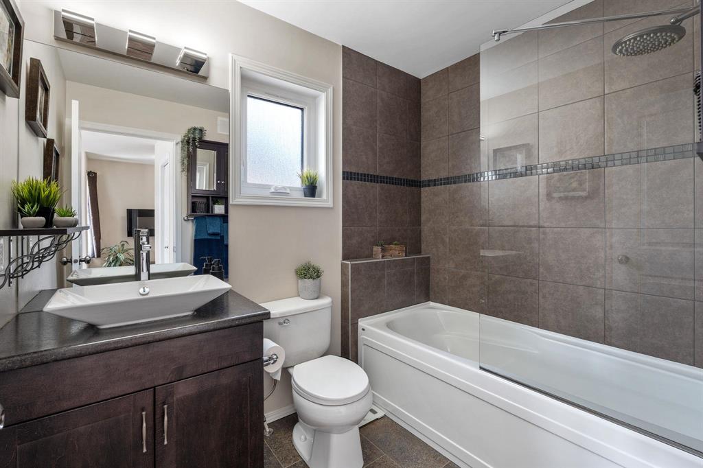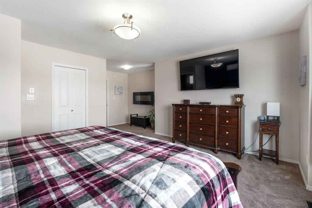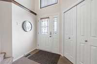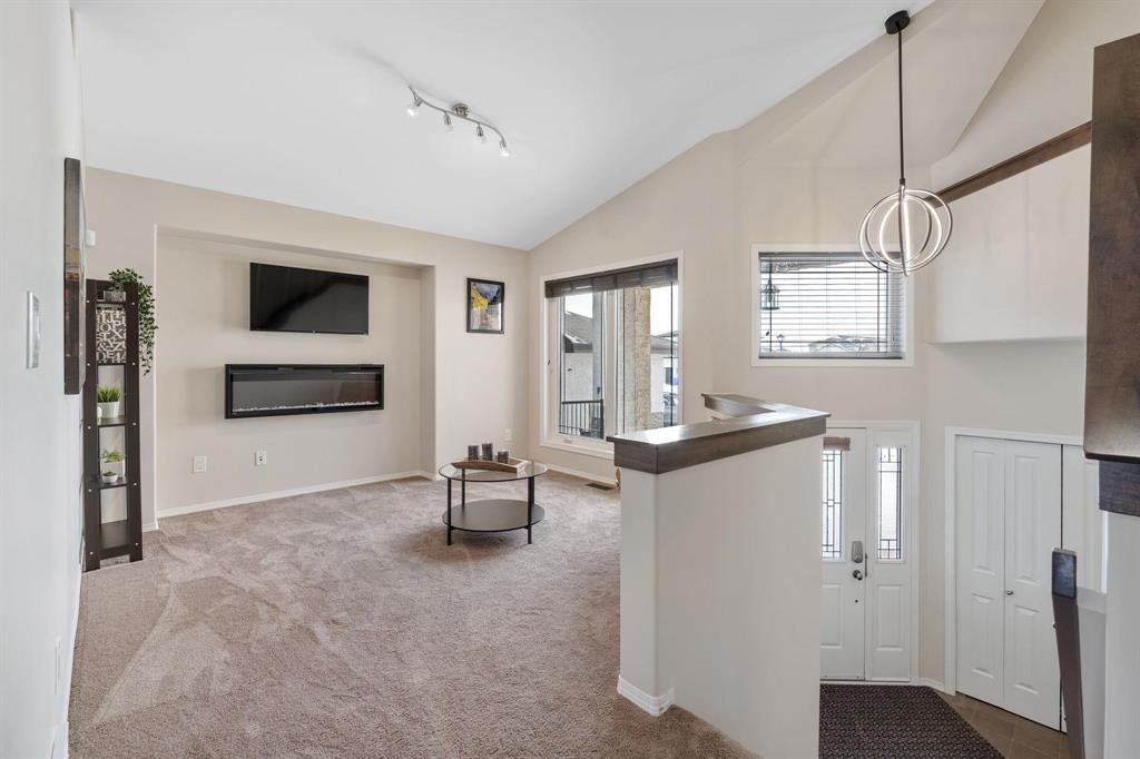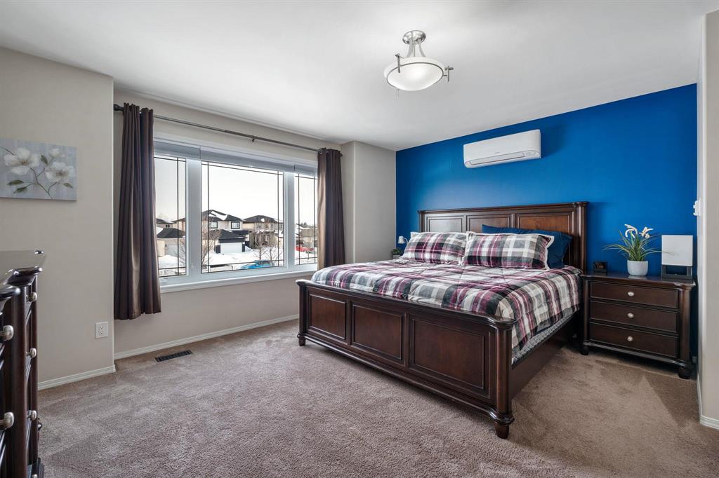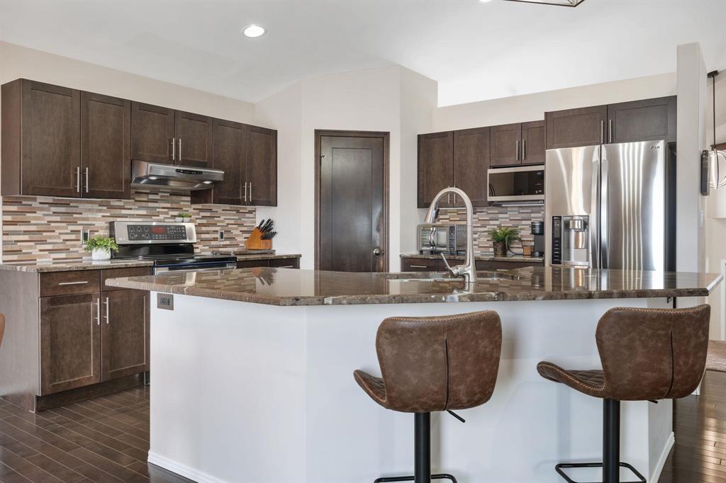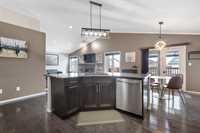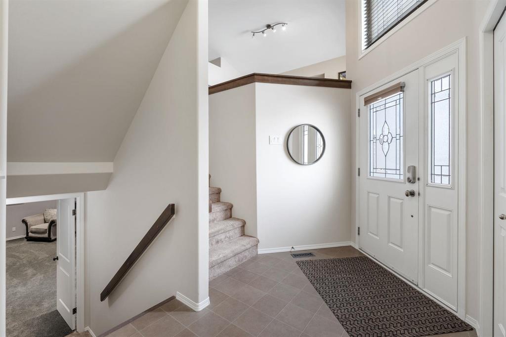 Showings start Thurs, March 5. Open House Sun, March 8 from 1–3 PM. Offers Tues, March 10 at 3 PM. Absolutely stunning 5-bedroom cab-over on a gorgeous pie-shaped lot in a highly sought-after area close to all major amenities. Pride of ownership is evident from the moment you arrive. Spacious front foyer with garage access leads to a bright main floor featuring a large flex room (dining or sitting area), two generous bedrooms and a full bath. The massive eat-in kitchen offers an enormous island, granite countertops, hardwood floors, vaulted ceilings, abundant cabinetry and large pantry, all overlooking the great room with built-in wall unit and gas fireplace. Step outside to the beautiful two-tier deck with pergola and hot tub (new cover) and enjoy the fully fenced, meticulously landscaped yard. Upstairs features a huge primary with separate AC system, walk-in closet and ensuite with soaker tub. The beautifully finished basement includes a large rec room (projector and theatre system included), two bedrooms, 2-piece bath with shower rough-in and spacious utility room. Finished garage, shingles 2025, 200 amp, H20 tank 2023, high-end appliances including double oven and new washer. Shows A+++!
