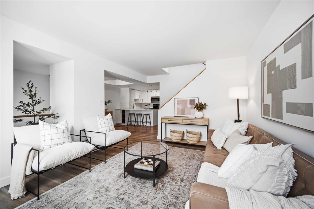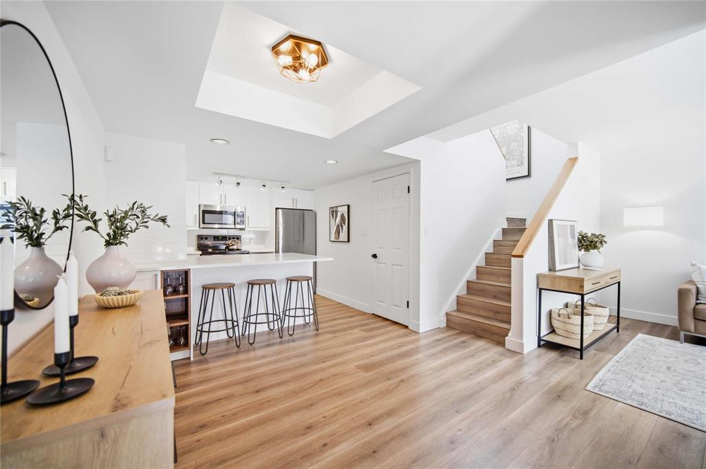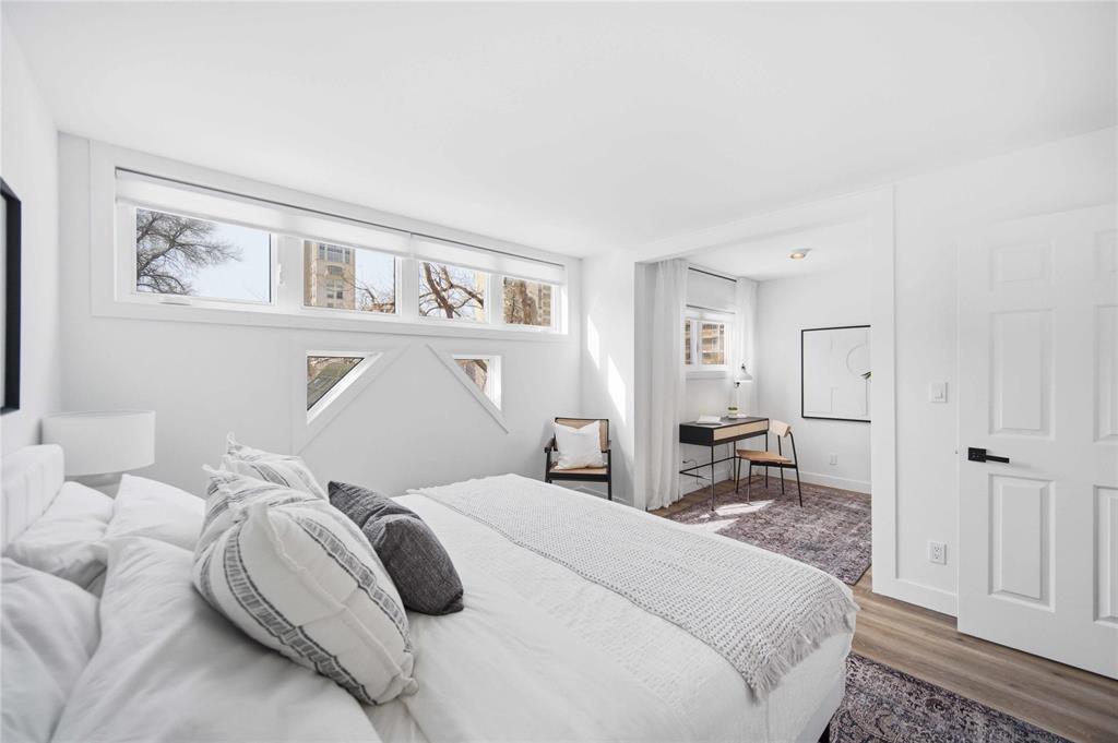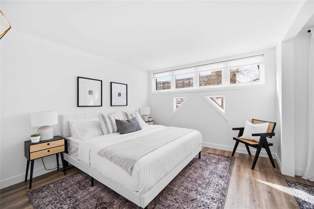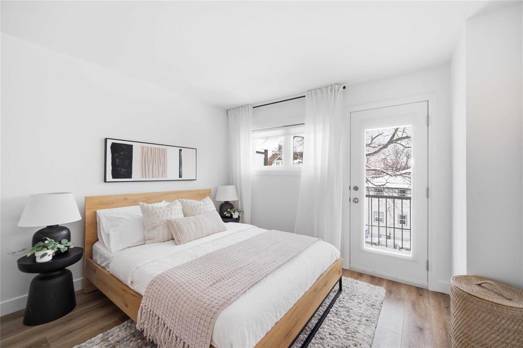 NEW TO MAKET: Stunning 1,223 sq ft townhome condo in a fantastic location just steps from Wellington Crescent. Exceptionally well maintained with fantastic layout. The large west-facing front window with vaulted ceiling is an impressive focal point while providing warm natural light. Contemporary white kitchen features soft-close doors, subway tile backsplash, stone countertops & stainless steel appliances. Generous size main-floor in-suite storage room. Upstairs, there are two spacious bedrooms. The primary suite has a walk-in closet & bonus flex space - ideal for a home office. The second bedroom has a private balcony. The beautifully updated tiled bathroom includes a separate vanity area, perfect for busy mornings. South-facing windows along hallway & staircase provide even more natural light. Updates include stylish fixtures, flooring & windows. **ADDITIONAL FEATURES INCLUDE INSUITE LAUNDRY, CENTRAL AIR CONDITIONING, ASSIGNED PARKING, & PROFESSIONALLY MANAGED COMPLEX WITH HEALTHY RESERVE FUND. Tucked away in a quiet yet highly walkable location with easy access to downtown, restaurants, grocery stores, shopping, transit & all amenities. Move-in ready with a flexible possession!