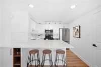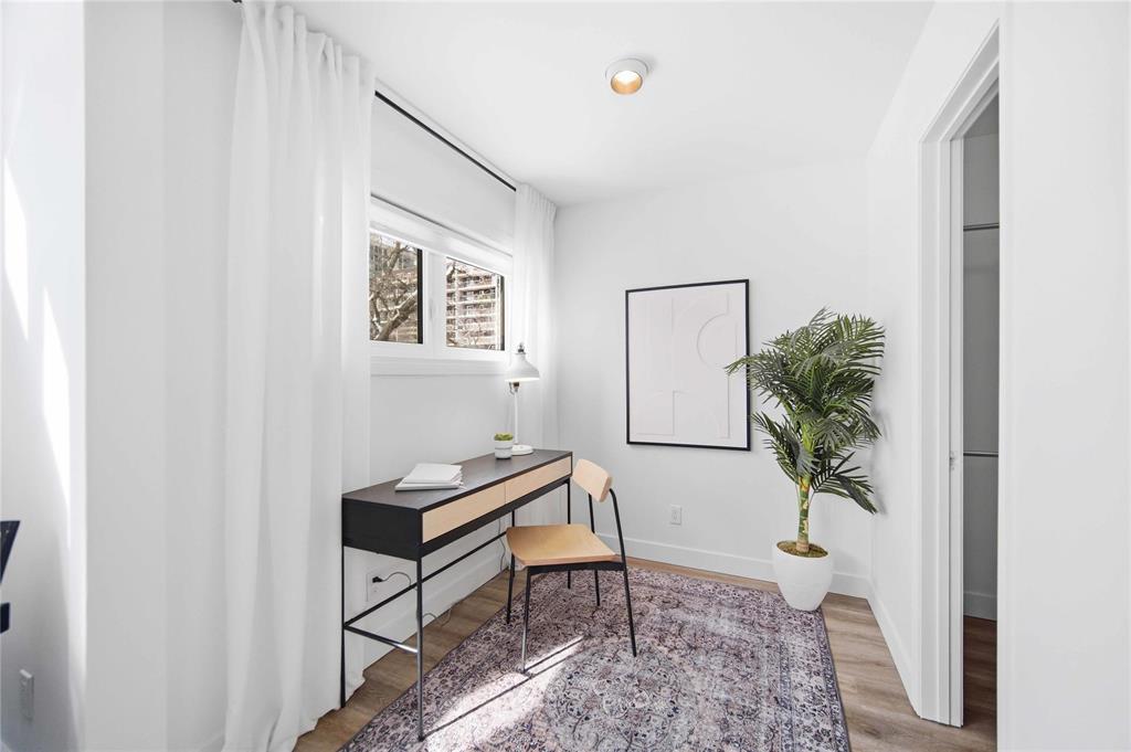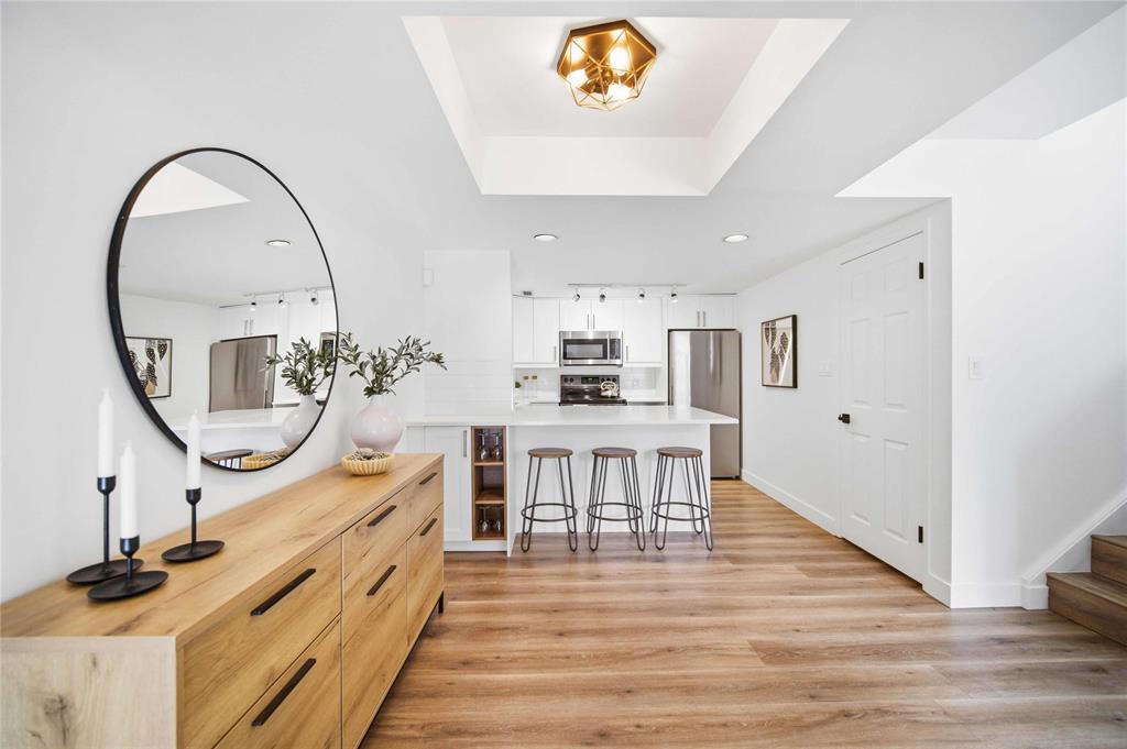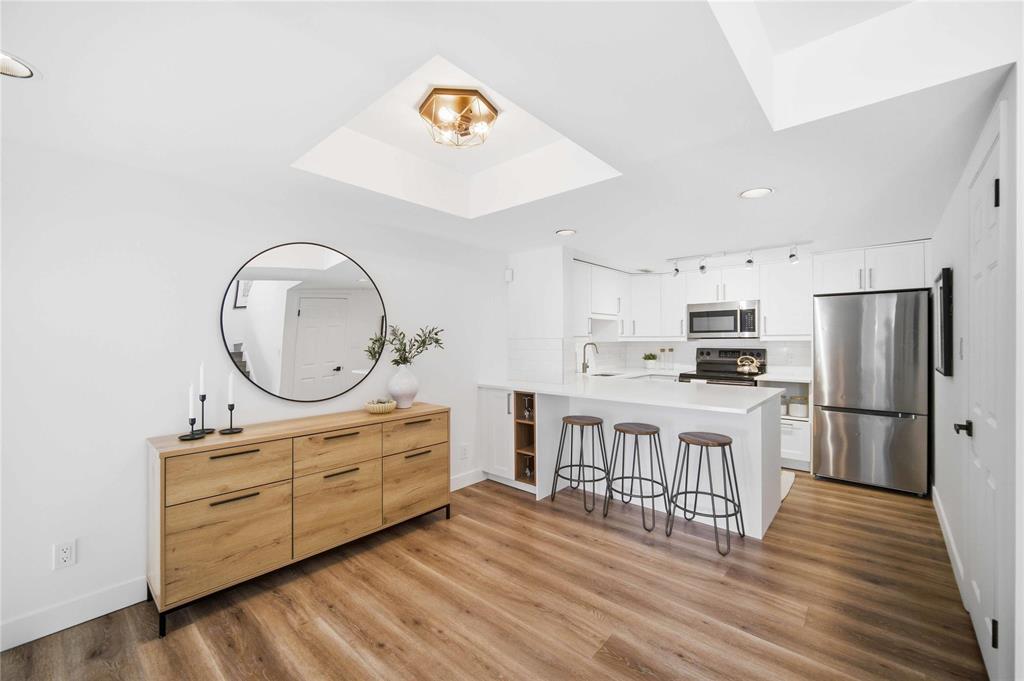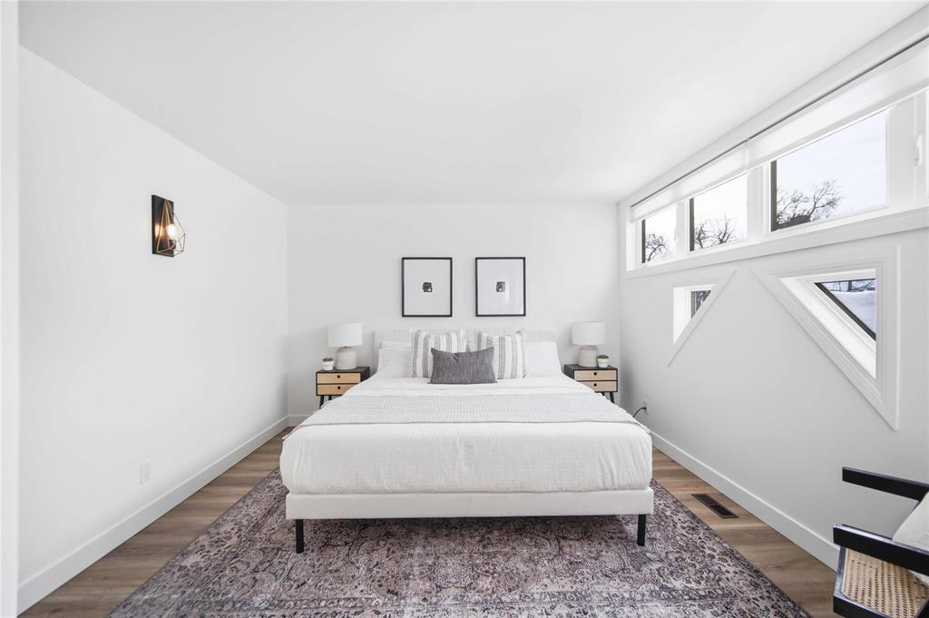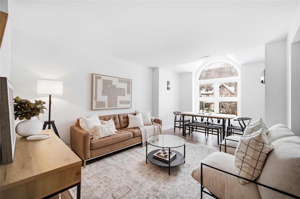 NEW TO MAKET: Stunning 1,223 sq ft townhome condo in a fantastic location just steps from Wellington Crescent. Exceptionally well maintained with fantastic layout. The large west-facing front window with vaulted ceiling is an impressive focal point while providing warm natural light. Contemporary white kitchen features soft-close doors, subway tile backsplash, stone countertops & stainless steel appliances. Generous size main-floor in-suite storage room. Upstairs, there are two spacious bedrooms. The primary suite has a walk-in closet & bonus flex space - ideal for a home office. The second bedroom has a private balcony. The beautifully updated tiled bathroom includes a separate vanity area, perfect for busy mornings. South-facing windows along hallway & staircase provide even more natural light. Updates include stylish fixtures, flooring & windows. **ADDITIONAL FEATURES INCLUDE INSUITE LAUNDRY, CENTRAL AIR CONDITIONING, ASSIGNED PARKING, & PROFESSIONALLY MANAGED COMPLEX WITH HEALTHY RESERVE FUND. Tucked away in a quiet yet highly walkable location with easy access to downtown, restaurants, grocery stores, shopping, transit & all amenities. Move-in ready with a flexible possession!