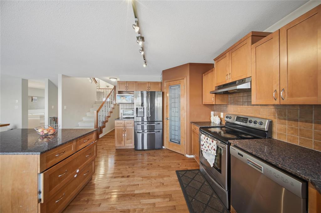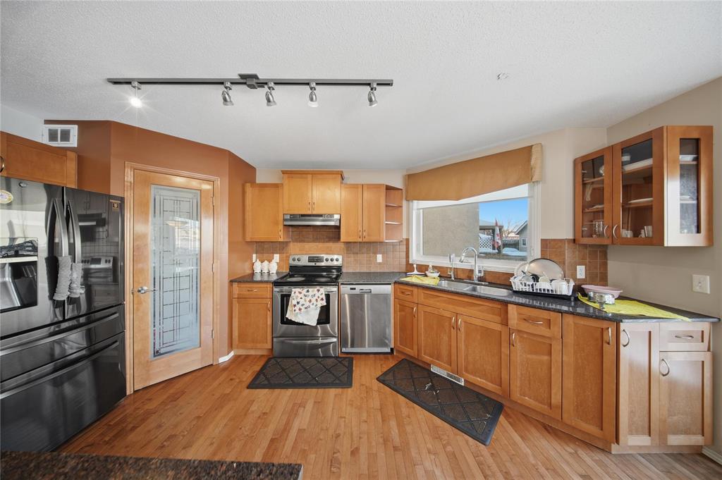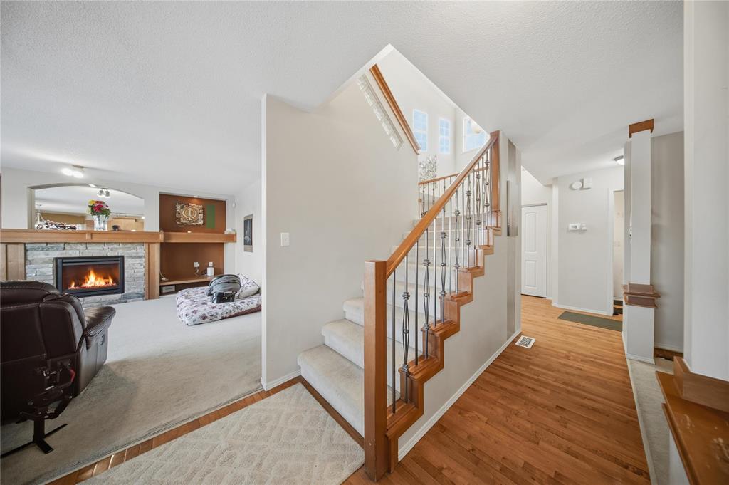 SS Now OFFERS Offer are as Received LOCATION, LOCATION! Beautiful 2 Storey home in Amber Trails Situated on a Corner Lot, Overlooking the Park. View of the Lake at the back. This impressive 2256 Sqft. Home offers 4 Brs. 2.5 Baths & a Double Attached Garage. The Main Level features an inviting foyer with Hardwood Floors & 17’ Ceiling. A Large Eat-in Kitchen with Maple Cabinets, Corner Pantry, New SS Appliances, Island & Granite Counter Tops. Formal Dining, 2Pc Bath, Cozy Living Rm. & a spacious Great Room with Built-In Shelving + Gas Fireplace. The Upper Level offers a Full Bath & all 4 Spacious Bedrooms including the Master Br. which features a Walk-in Closet & a beautiful Deluxe Bath with Jacuzzi Tub. Other Features include: Main Floor Laundry, Central Air, High/E Furnace New Shingles (2024) Hot water Tank (2024), Deck a Nicely landscaped, Fenced Backyard, 20x24 Attached Double Garage & a Lovely Front Porch. This is a Great Family Home, in a Great Neighbourhood; Perfect for any size Family. Book Your Showing Today!