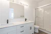 **OPEN HOUSE SATURDAY 1-3PM** FINISHED AND READY TO MOVE IN. Designed to impress, this stunning 1403 sqft bilevel home features a bold front elevation and a welcoming entryway. The exterior will showcase a striking combination of composite board and batten siding and stone accents, beautifully complemented by a charming wooden truss at the entrance — delivering incredible curb appeal. Built for quality and efficiency -- ICF foundation, triple-pane windows, and elegant quartz countertops throughout the kitchen and bathrooms. Inside, you'll find 3 spacious bedrooms, including a private primary suite with an ensuite that features a dual vanity. A second full bathroom on the main level adds extra convenience for everyday living.