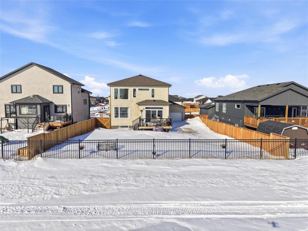 Triple car garage with drive-thru access to the fully fenced backyard, a generous deck for hosting, and a side entrance to the basement with roughed-in plumbing —ideal for a future in-law suite or income-generating opportunity.