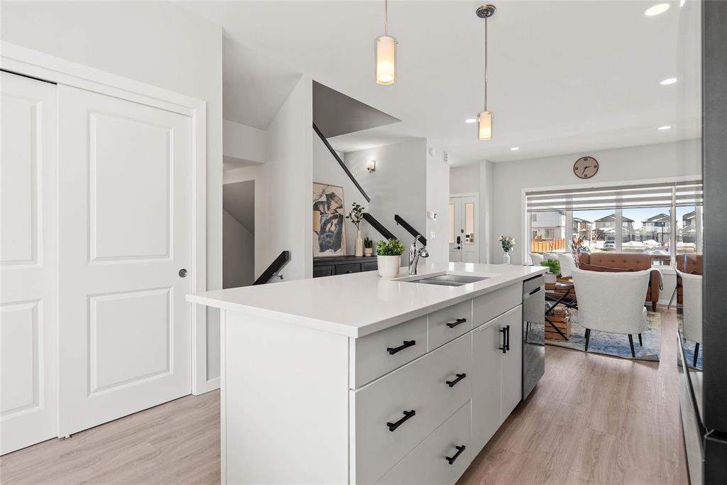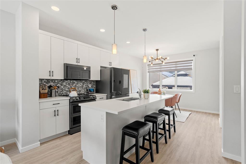 NO BIDDING WAR, OFFERS AS RECEIVED! OPEN HOUSE March 14 &15 (Sat & Sun) 2-4pm. Make this charming 2-storey side-by-side home in the highly sought-after Aurora at North Point neighborhood your new home! The open-concept main floor features a modern kitchen with quartz countertops, a tiled backsplash, and sleek black stainless steel appliances, complemented by pot lights throughout. A convenient 2-piece bath completes the main level. Upstairs, you'll find three spacious bedrooms, including a primary bedroom with a walk-in closet and a 3-piece ensuite bath, along with another full bath. The fully finished basement offers a large rec room, an additional bedroom, and a full bath, perfect for family living. Step outside to a fully fenced backyard with a deck, pergola, and a double detached garage. Located near Garden City Mall, Wal-Mart, Seven Oaks Hospital, and other amenities, this home has everything you need. Don’t miss out—schedule your viewing today!