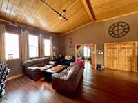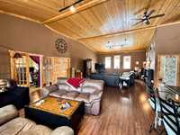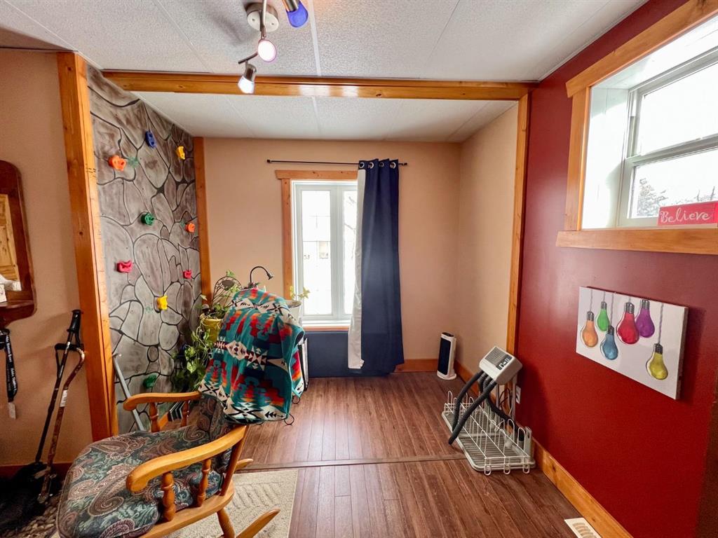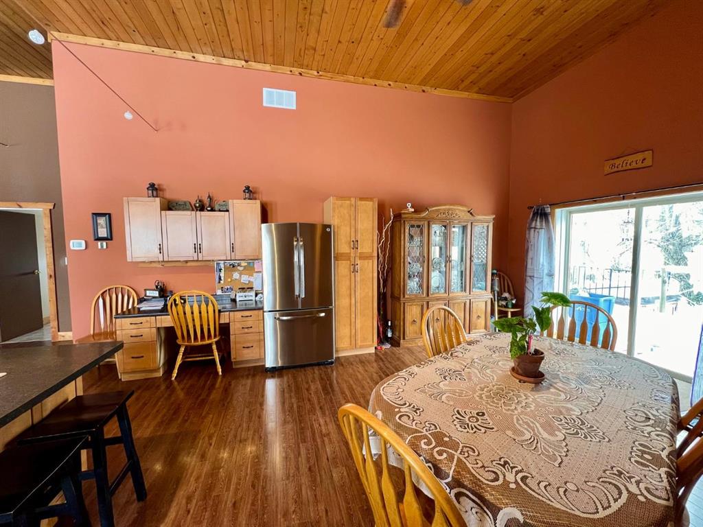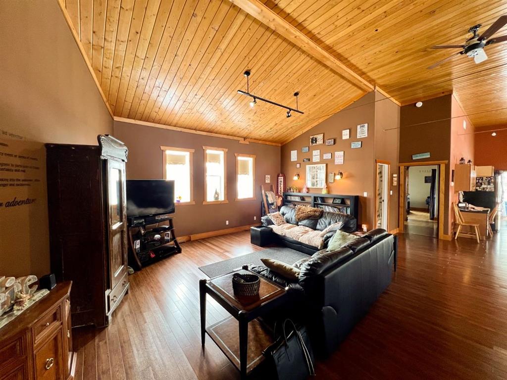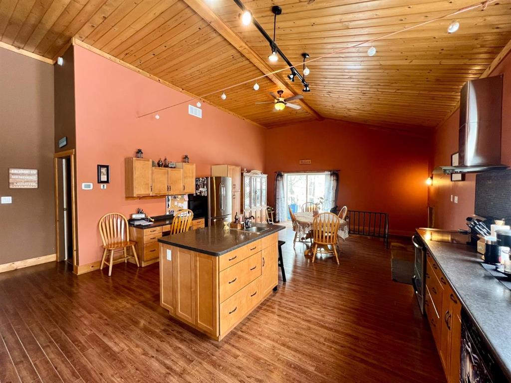 From the moment you step into the inviting front foyer, you’ll appreciate the warmth & character this property offers. The open-concept design is highlighted by stunning pine cathedral ceilings & a spacious living/family room that creates a welcoming atmosphere. The maple kitchen & dining area are perfect for entertaining, offering ample space to host large family gatherings. The impressive ceiling height continues into the primary bedroom, complete with a 4pc ensuite. An office at the front of the home provides an ideal space for remote work. Tile & laminate flooring run throughout the main floor. The basement has been spray-foamed for added efficiency, with egress windows already installed, offering excellent potential for additional living space. A 2pc bath has been started, with an extra vanity and tub included. Step outside to a large back deck featuring an included 8 person hot tub, perfect for relaxing. The generous side yard provides additional outdoor space for children, pets, or future landscaping ideas. An additional 50' x 120' lot directly west of the property is available for purchase. Ask the listing agent for more details. This one-of-a-kind property is ready for you to call it home.