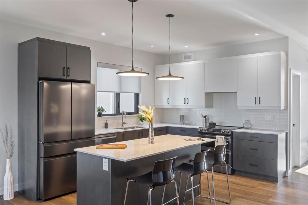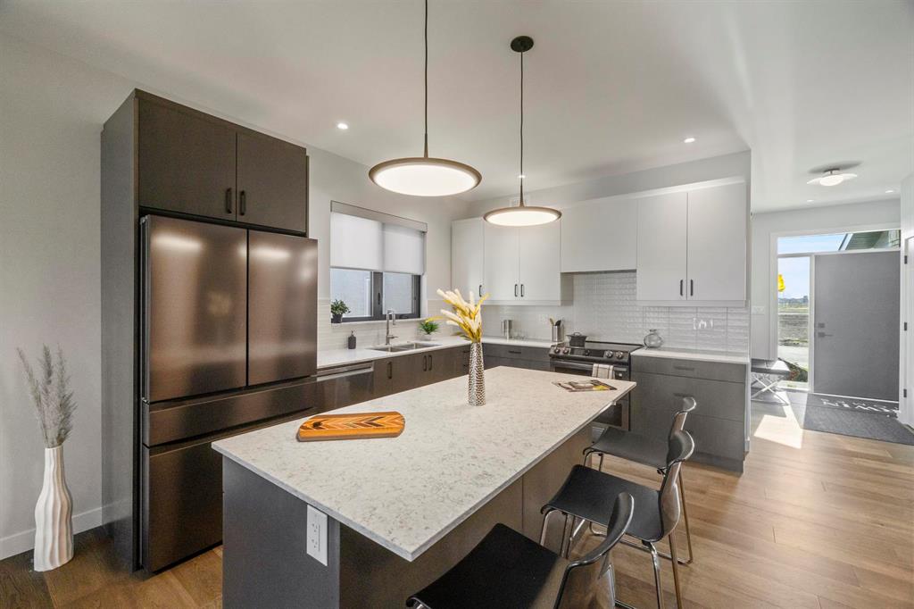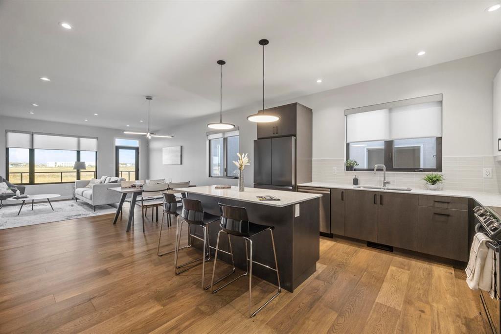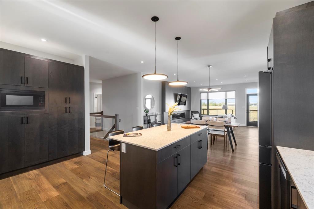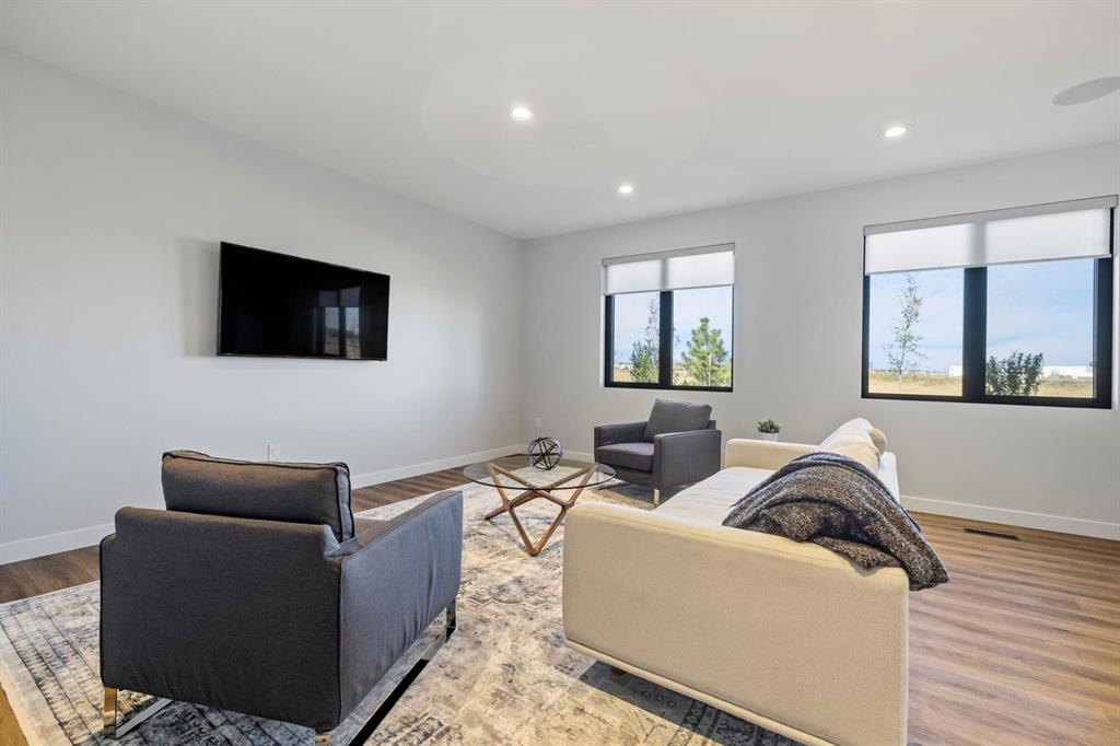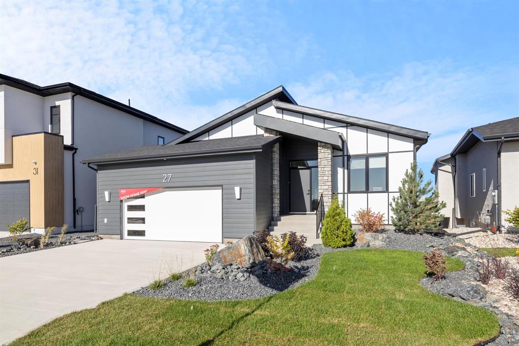 SHOW HOME 27 Oasis Bend Tue/Thur 5:00 - 8:00 and Sat/Sun 1:00 - 5:00pm. Fabulous 1794 sq ft Walk-Out Bungalow with a fully finished lower level, complete with a structural wood basement floor for warmth and comfort. Over 3,000 sq ft of developed living space with 2 bedrooms in the lower level for a total of 5 bedrooms. Large Deck 18 X 12 with Glass & Aluminum Railing plus concrete pad below. Patio Doors on main and lower level. Primary bedroom has large ensuite with double sinks, quartz counter, glass and tile shower & heated floor along with a large walk in closet. Great Room with electric fireplace and built-in shelves. Exterior is James Hardie siding with cultured stone on the front and rear posts. Includes high efficiency gas furnace, central air conditioning, HRV & 60 Gallon electric HW Tank and more. Garage is oversized at 24.5 X 23.5. Possession summer 2026 - Close to two new schools as well as the University!! Pictures of very similar home at 27 Oasis Bend.