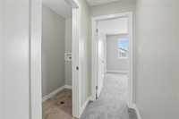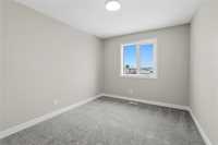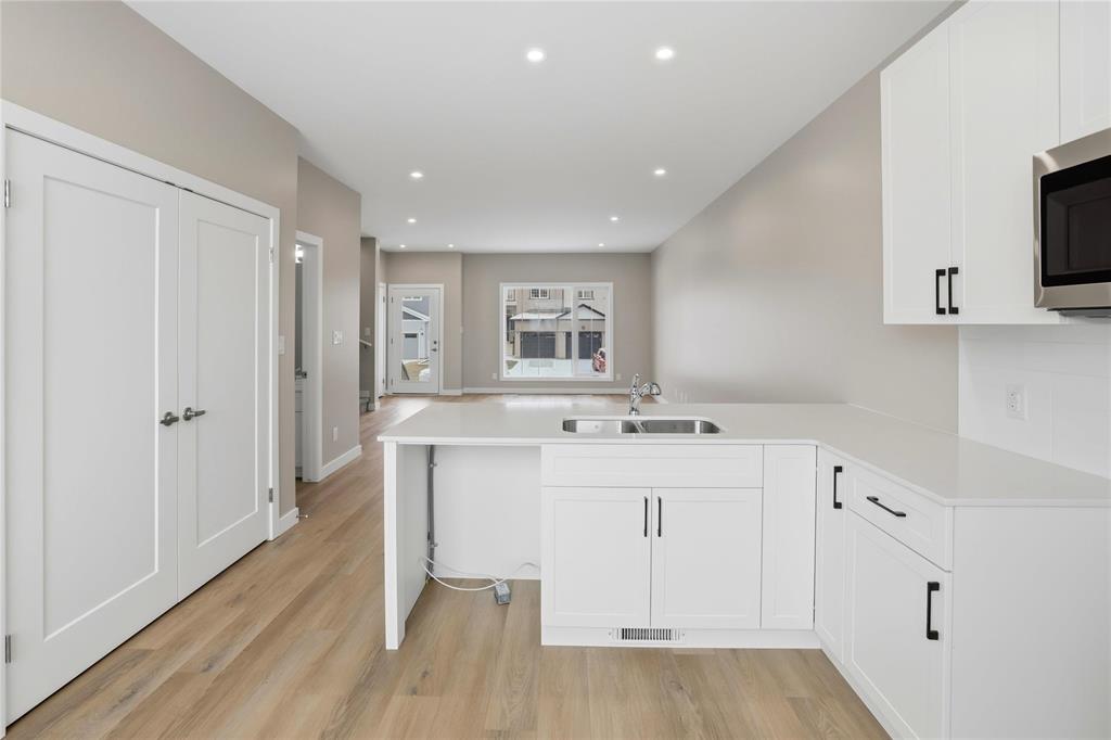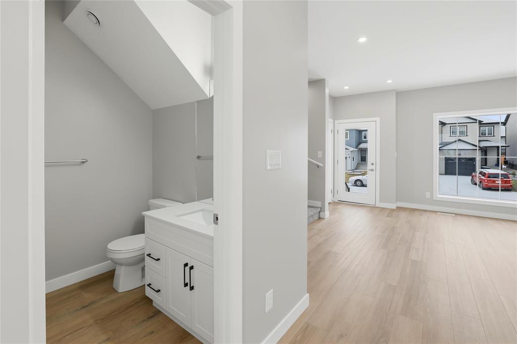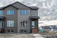 Quality-constructed single-family attached home in Aurora at North Point. First-time home buyers may be eligible for the 5% GST rebate, offering significant upfront savings. Please note: listing photos are from a similar build; finishes will vary. This well-designed 3-bedroom, 2.5-bathroom home features an open-concept layout with 9-foot ceilings, large windows, and light-wood luxury vinyl plank flooring throughout the main living area. The kitchen will feature warm wood-tone cabinetry with modern black hardware, a tile backsplash, and a peninsula with breakfast bar seating, ideal for everyday living and entertaining. Upstairs includes a spacious primary bedroom with a walk-in closet and a 4-piece ensuite, along with two additional bedrooms and a full bath. Constructed with an engineered web truss floor system and backed by a 5-year new home warranty. Concrete front walkway and double parking pad included. Located close to walking trails, parks, and the new K–8 school. Spec sheet and floor plans available upon request.