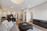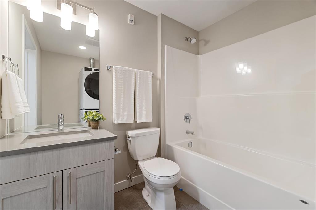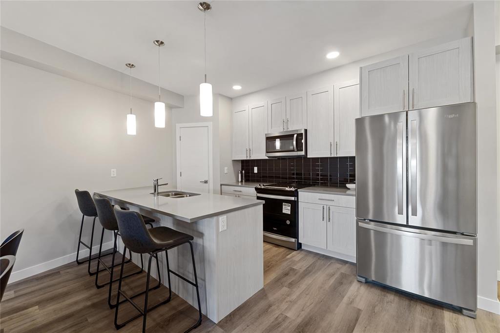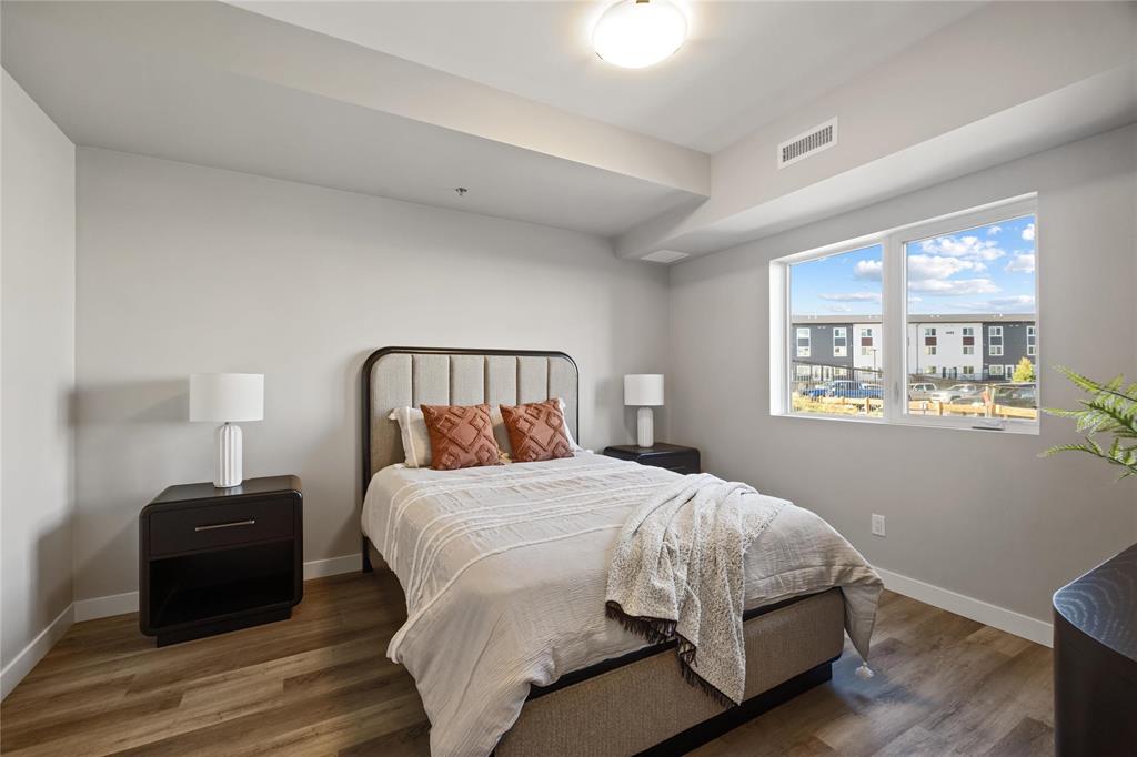 *OPEN HOUSES: Thursdays 4pm-7pm, Sundays 1pm-4pm (closed on Sundays of long weekends)* Welcome to Bloom & Timber! This brand new 1109sqft 2 bdrm, 2 bath condo has quality finishes throughout, in-suite laundry, 1 underground parking stall & 1 storage locker! This functional floor plan offers an open concept kitchen/LR/DR space with large patio doors flooding an abundance of natural light through the space. 9' ceilings, LVP flooring, quartz counter tops, ceramic tile backsplash, soft close cabinets/drawers & all appliances included are amongst the many features you'll see. In the spacious primary bedroom you'll find a 3pc ensuite and WIC. This unit is finished off with 2nd bedroom/den, walkthrough closet/storage space & 4pc bath/laundry room. Price includes GST, 1 year builder warranty, 1UG parking stall, 1 storage locker & all appliances. Experience a lifestyle of convenience with the amenities - Gym, Business Centre, Common Room, Owner's Lounge, 2 Flex Rooms, 2 Guest Suites!