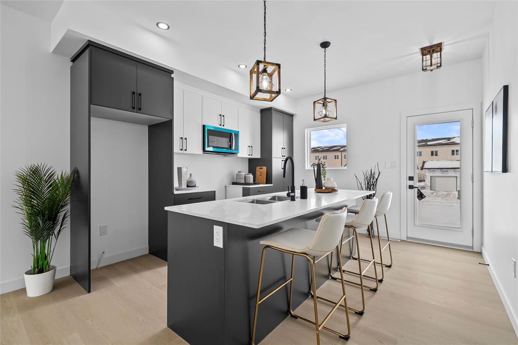 Highlights include high ceilings on the main floor and basement, an upgraded kitchen and bathrooms with elegant quartz countertops, and professionally landscaped front yards. A rear parking pad adds extra convenience. Ideally located near parks, schools, CentrePort, and Gurudwara Shri Kalgidhar Sahib. Perfect for families, professionals, or investors. **Attention first-time home buyers: you may be eligible for a GST rebate. Buyers are advised to perform their own due diligence to confirm eligibility requirements. Please call for more details. ** Measurements are +/- jogs.