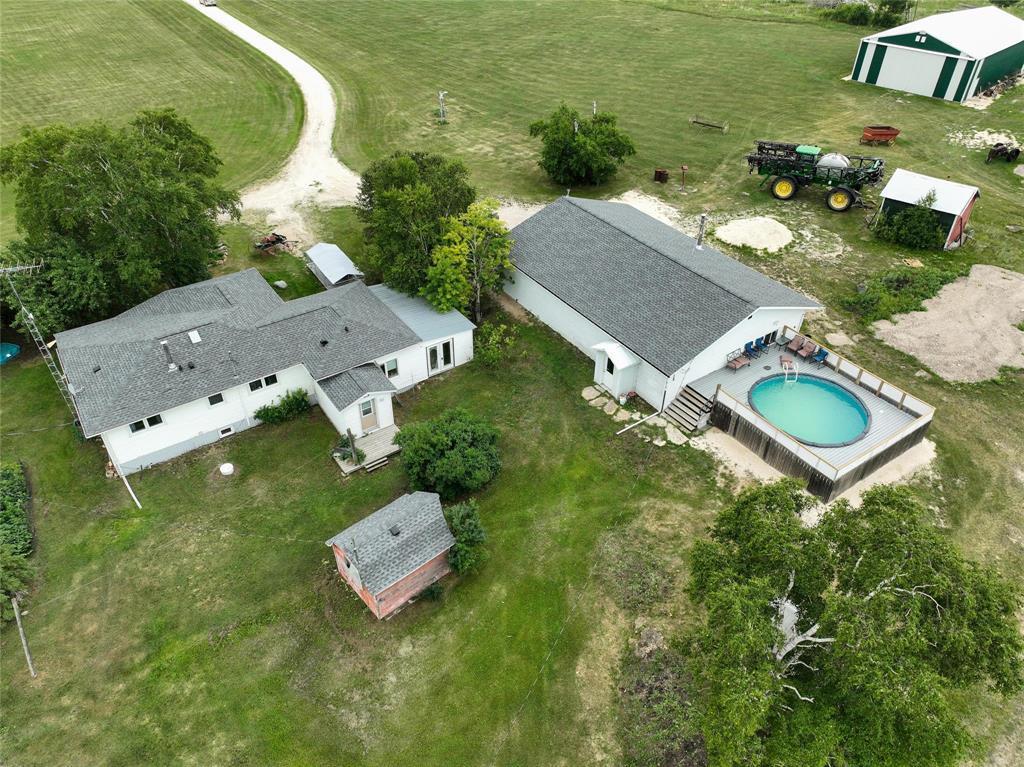 Sprawling 80-Acre Estate. Updated Home & Extensive Outbuildings. Private retreat nestled on 80 AC of serene countryside. This beautifully updated 1364 sf home offers 3 BRs & 3 full baths, thoughtfully designed for comfort & functionality. Step into the bright inviting entryway which leads to a versatile space & a convenient 3-piece bath. A few steps up, you'll find the immaculate kitchen & dining area, featuring contemporary finishes. The adjacent BR wing includes a full bath & showcases sleek lines & a calming aesthetic. Lower level is a cozy haven with a wood-burning fireplace, ample storage, and another 3-piece bathroom — perfect for relaxing evenings or hosting guests. Outside the property truly shines. Enjoy summer days in the above-ground pool, accessed through the charming 293 sf "Garage House", for hobbyists or entrepreneurs. The array of outbuildings is unmatched: 34'x50' Heated & Insulated Shop/Garage w/10' ceilings; 50'x50' Quonset for versatile storage; 42'x66' Machine Shed w/Loft space; 48'x24' Machine Shed w/dedicated workshop. Whether you're seeking a peaceful homestead, a working farm, or a multi-use property with room to grow, this estate offers endless possibilities.