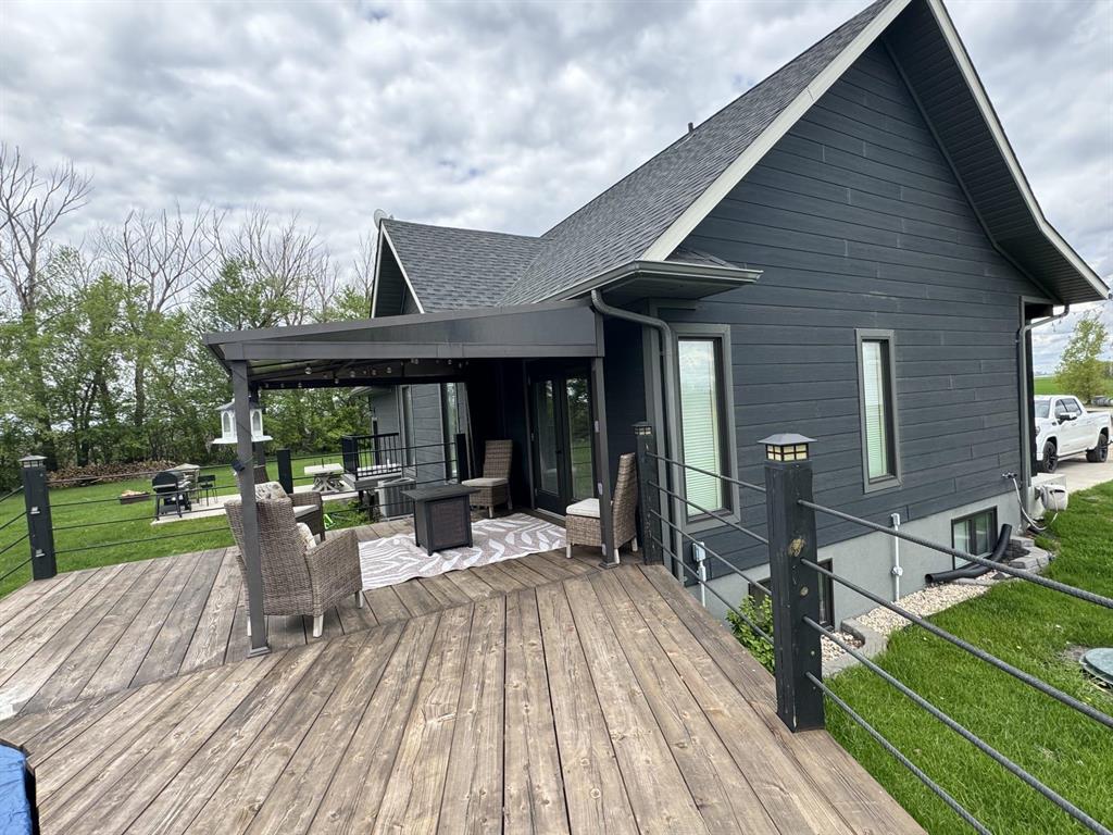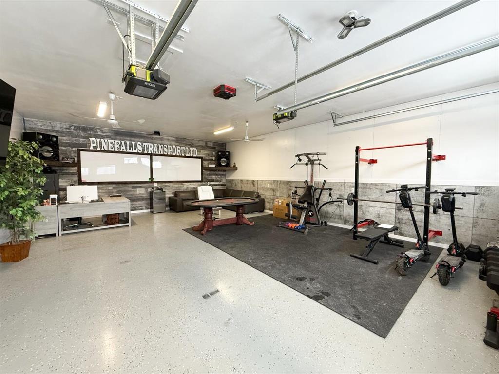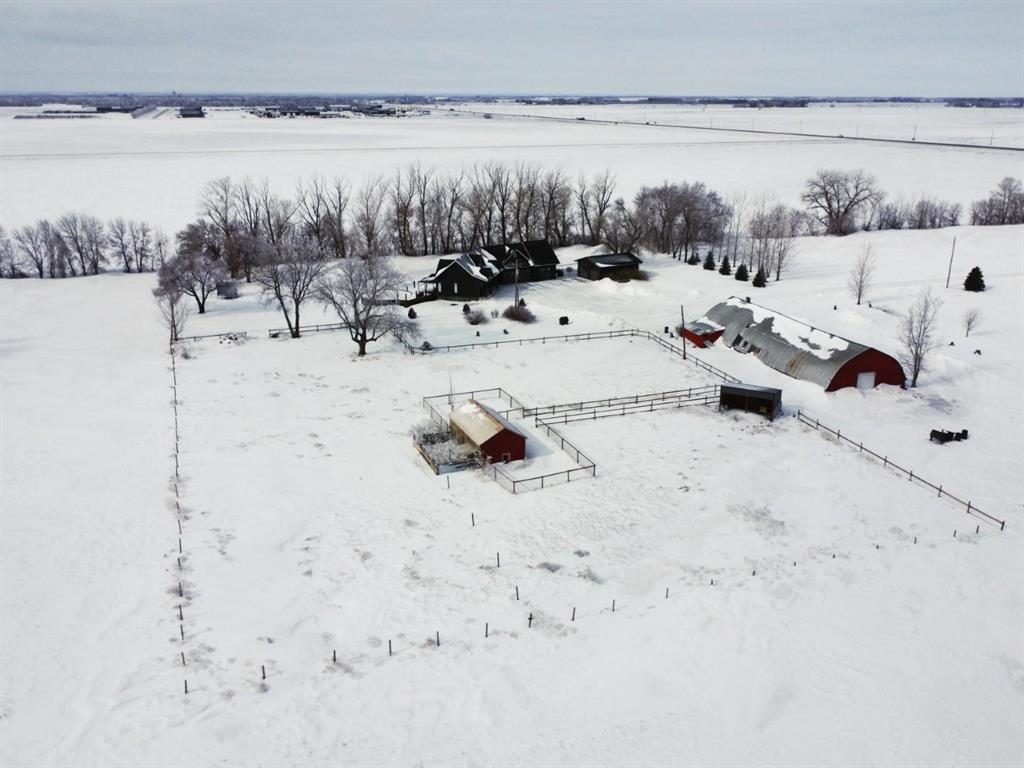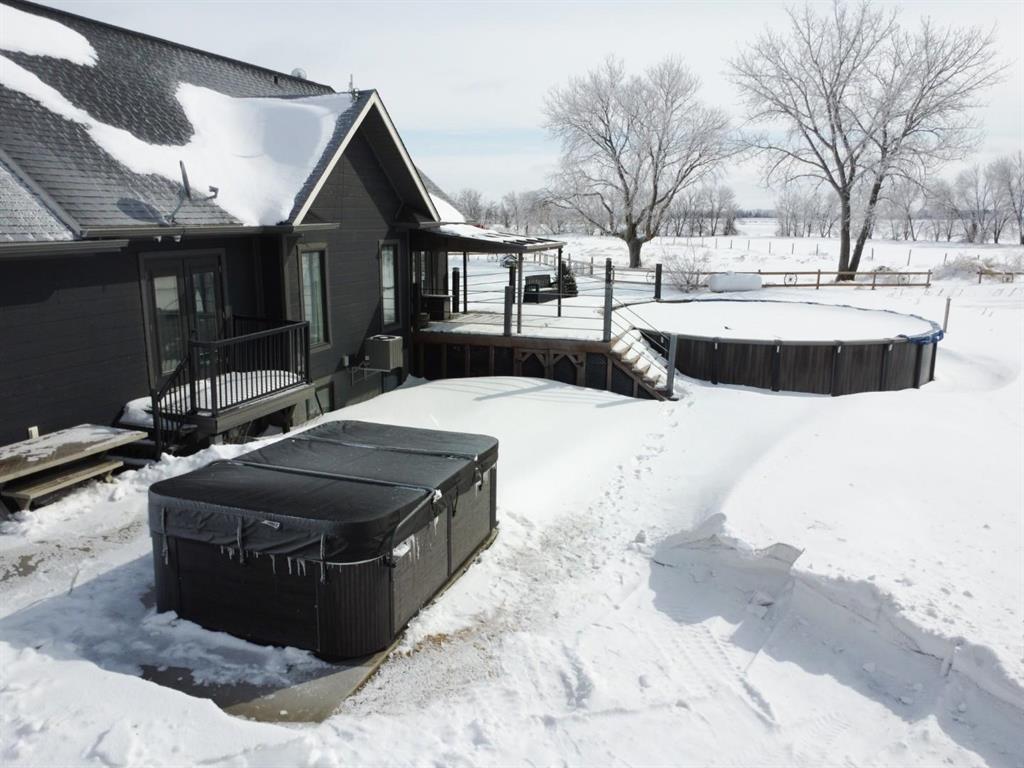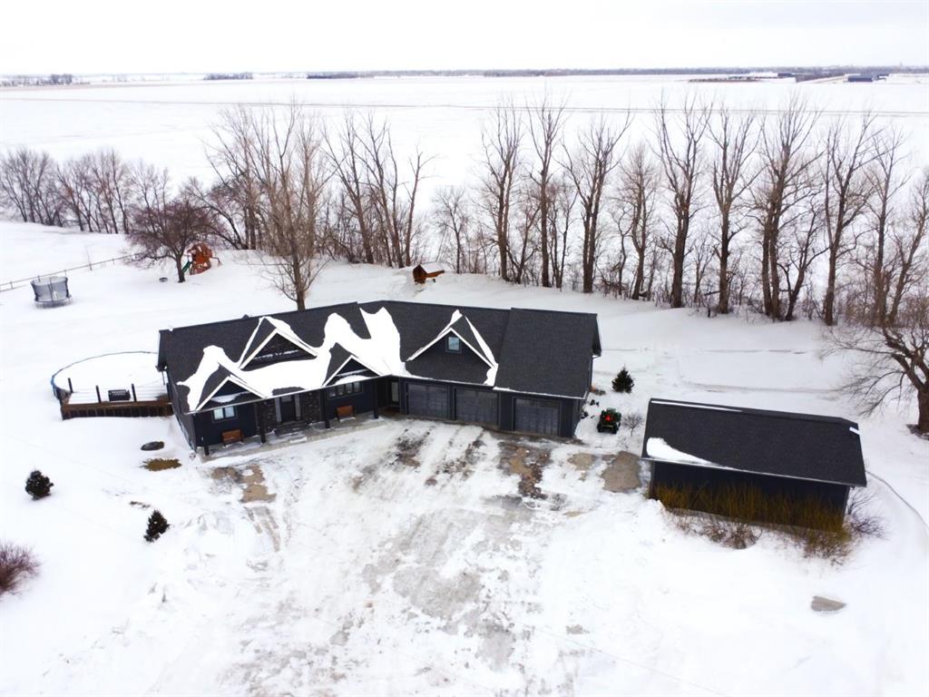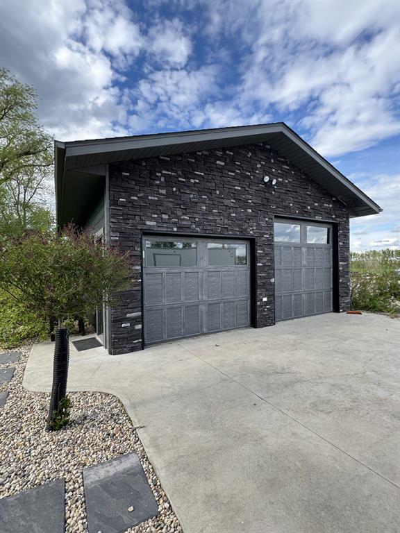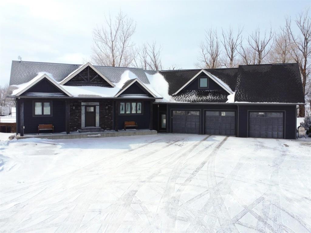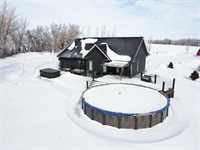 Enjoy country living just minutes from Winkler! Set on 4.17 acres, this 1,920 sqft home offers an open-concept layout w/ white kitchen cabinets, painted concrete countertops, island, walk-in pantry, & S/S appliances. The primary bdrm features a walk-in closet, ensuite bath w/ soaking tub & tiled shower, in-floor heating, & direct access to the deck. A secondary entrance leads to a 2 pc bath & the laundry area. Above the garage, is a 435 sqft bonus room w/ its own heating & cooling system & access to a balcony. The basement has in-floor heat, a rec space, 2 bdrms, storage & mechanical rooms. The attached 3-car garage, measuring 1,064 sqft, is also outfitted w/ in-floor heat. The yard includes a 24’ x 32’ heated shop, featuring 7' & 9' OH doors, 10' ceiling, epoxy flooring, & a 220-volt power outlet. A 40’ x 98’ barn w/ 100-amp breaker panel, is currently serving as cold storage. A large, fenced area with wind shelter & water supply makes it suitable for raising cattle or keeping horses. Additional amenities include a sound system in the shop, Starlink dish w/ router, 12-seat hot tub, 6-person electric sauna, 28’ diameter propane-heated swimming pool, playhouse, play structure, & chicken coop.