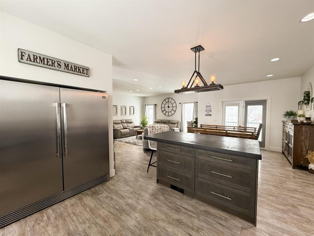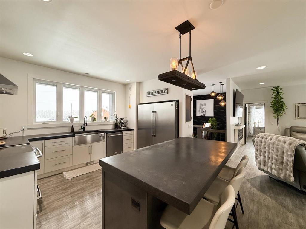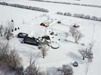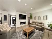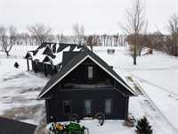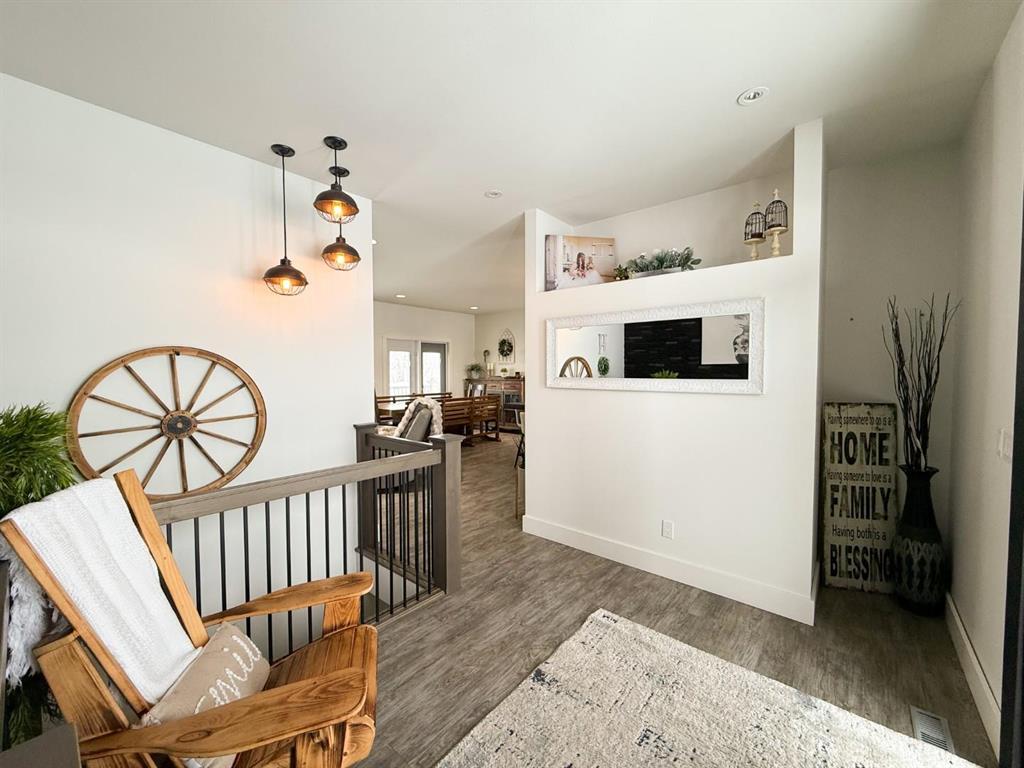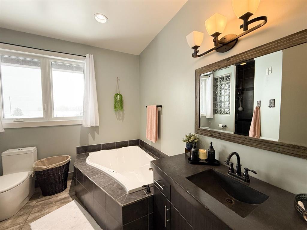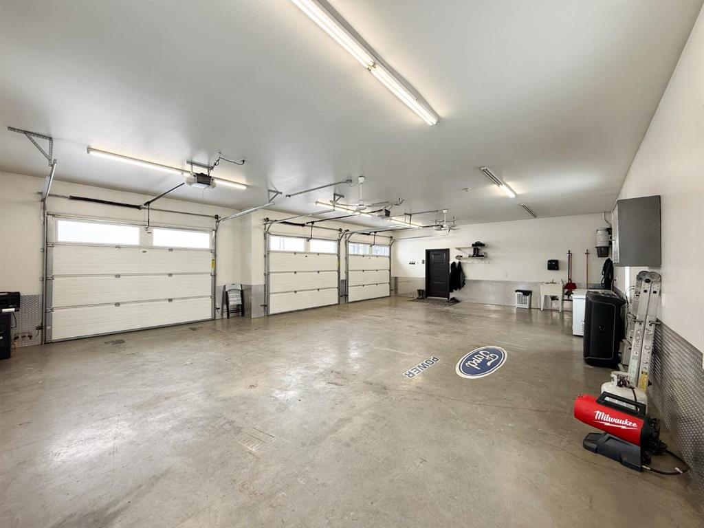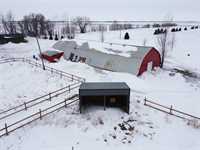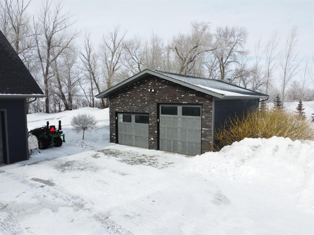 Enjoy country living just minutes from Winkler! Set on 4.17 acres, this 1,920 sqft home offers an open-concept layout w/ white kitchen cabinets, painted concrete countertops, island, walk-in pantry, & S/S appliances. The primary bdrm features a walk-in closet, ensuite bath w/ soaking tub & tiled shower, in-floor heating, & direct access to the deck. A secondary entrance leads to a 2 pc bath & the laundry area. Above the garage, is a 435 sqft bonus room w/ its own heating & cooling system & access to a balcony. The basement has in-floor heat, a rec space, 2 bdrms, storage & mechanical rooms. The attached 3-car garage, measuring 1,064 sqft, is also outfitted w/ in-floor heat. The yard includes a 24’ x 32’ heated shop, featuring 7' & 9' OH doors, 10' ceiling, epoxy flooring, & a 220-volt power outlet. A 40’ x 98’ barn w/ 100-amp breaker panel, is currently serving as cold storage. A large, fenced area with wind shelter & water supply makes it suitable for raising cattle or keeping horses. Additional amenities include a sound system in the shop, Starlink dish w/ router, 12-seat hot tub, 6-person electric sauna, 28’ diameter propane-heated swimming pool, playhouse, play structure, & chicken coop.